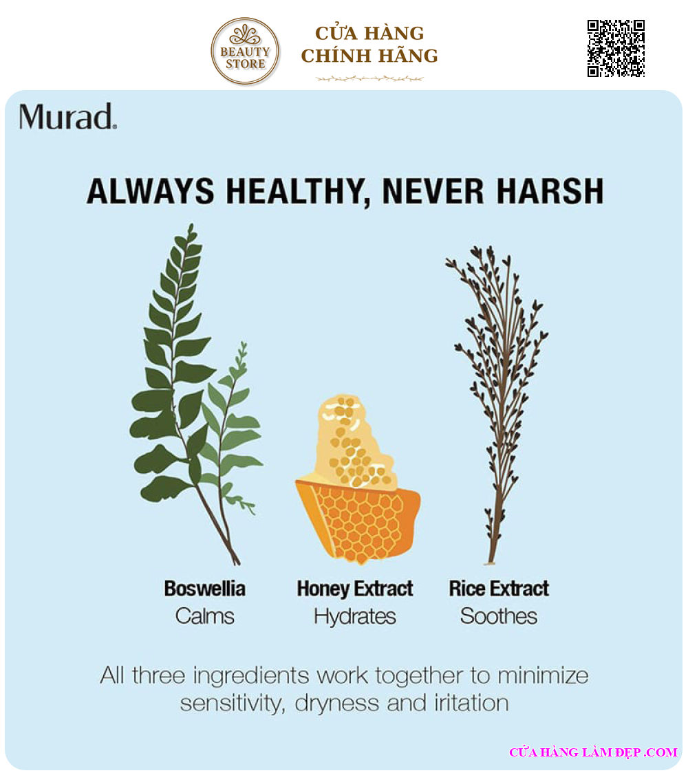 - Chiết xuất mật ong, Boswellia (Nhũ hương), Gạo: Có công dụng làm dịu và cấp ẩm giúp ngăn ngừa tình trạng kích ứng và khô da.