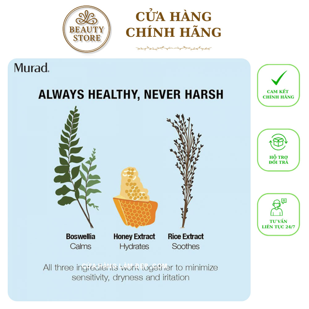 - Chiết xuất mật ong, Boswellia (Nhũ hương), Gạo: Có công dụng làm dịu và cấp ẩm giúp ngăn ngừa tình trạng kích ứng và khô da.