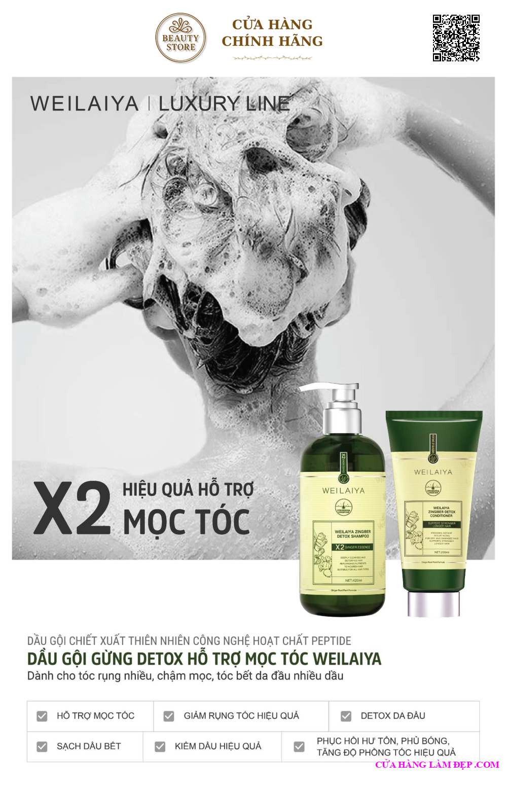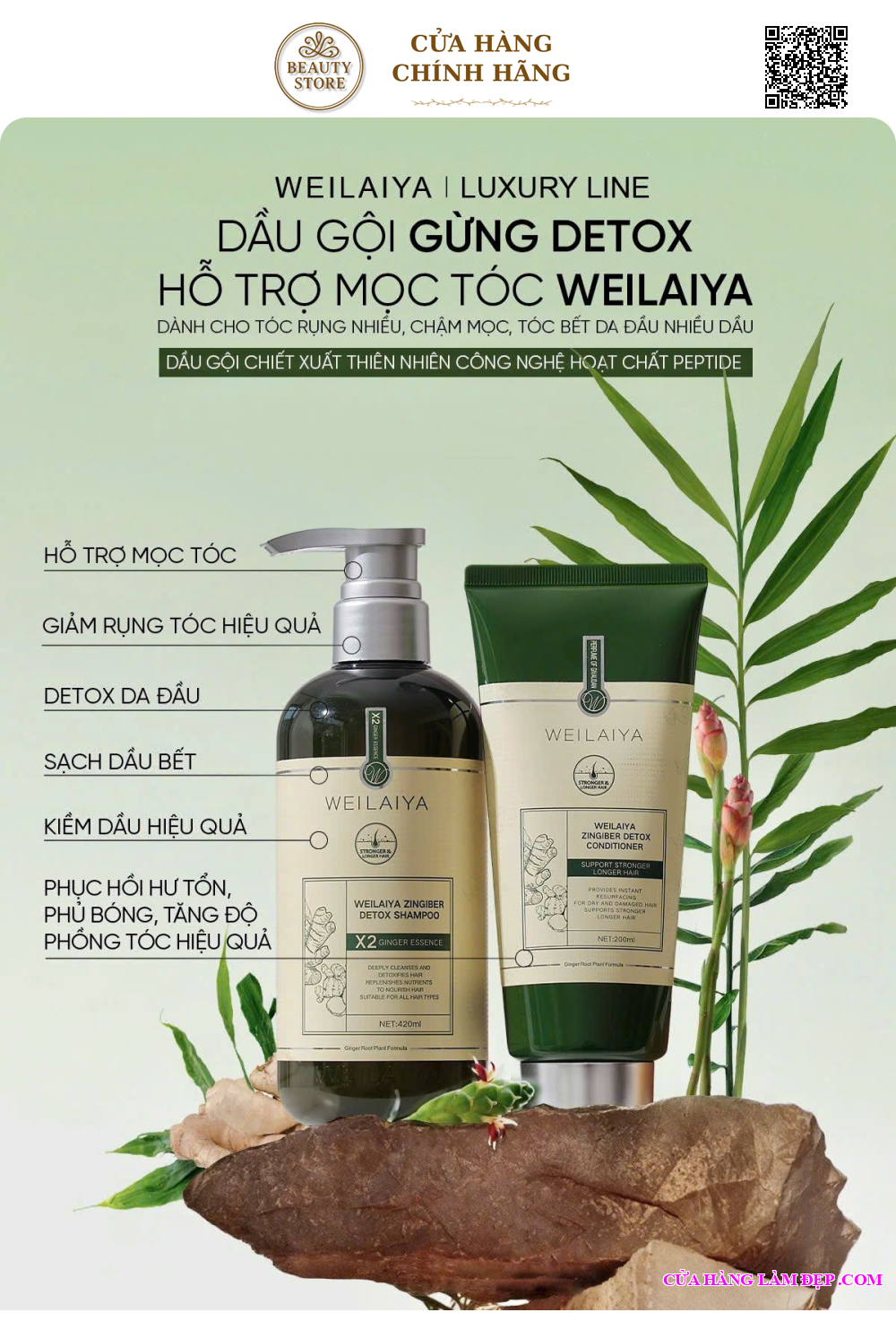 Bộ Gội Xả Gừng Detox Weilaiya Zingiber Detox Luxury Hỗ Trợ Mọc Tóc Từ Trung Quốc 420ml x 200ml được khách hàng của Hệ Thống Cửa Hàng Làm Đẹp đánh giá cao.