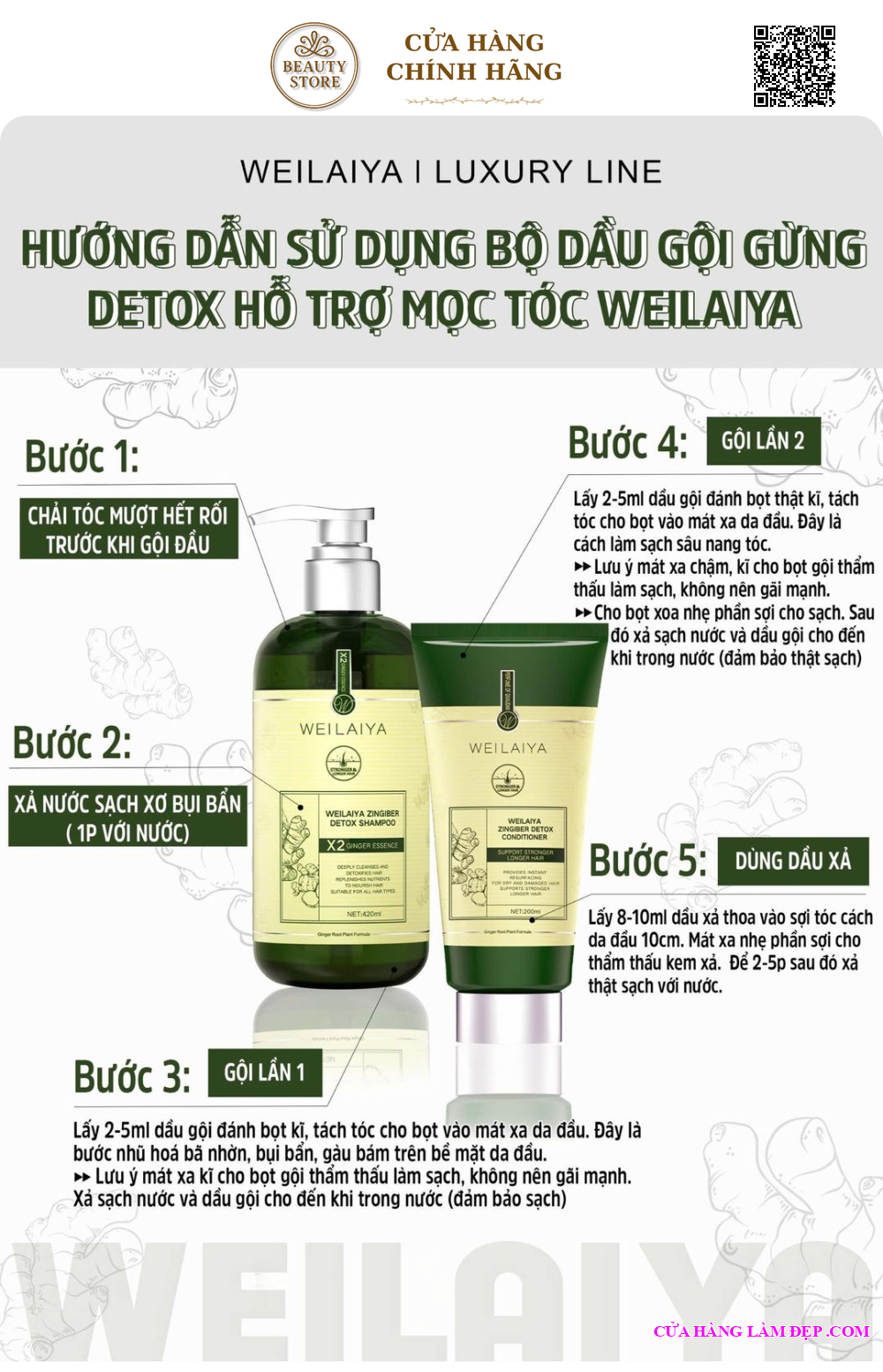 4. Hướng Dẫn Sử Dụng Bộ Gội Xả Gừng Detox Weilaiya Zingiber Detox Luxury Hỗ Trợ Mọc Tóc