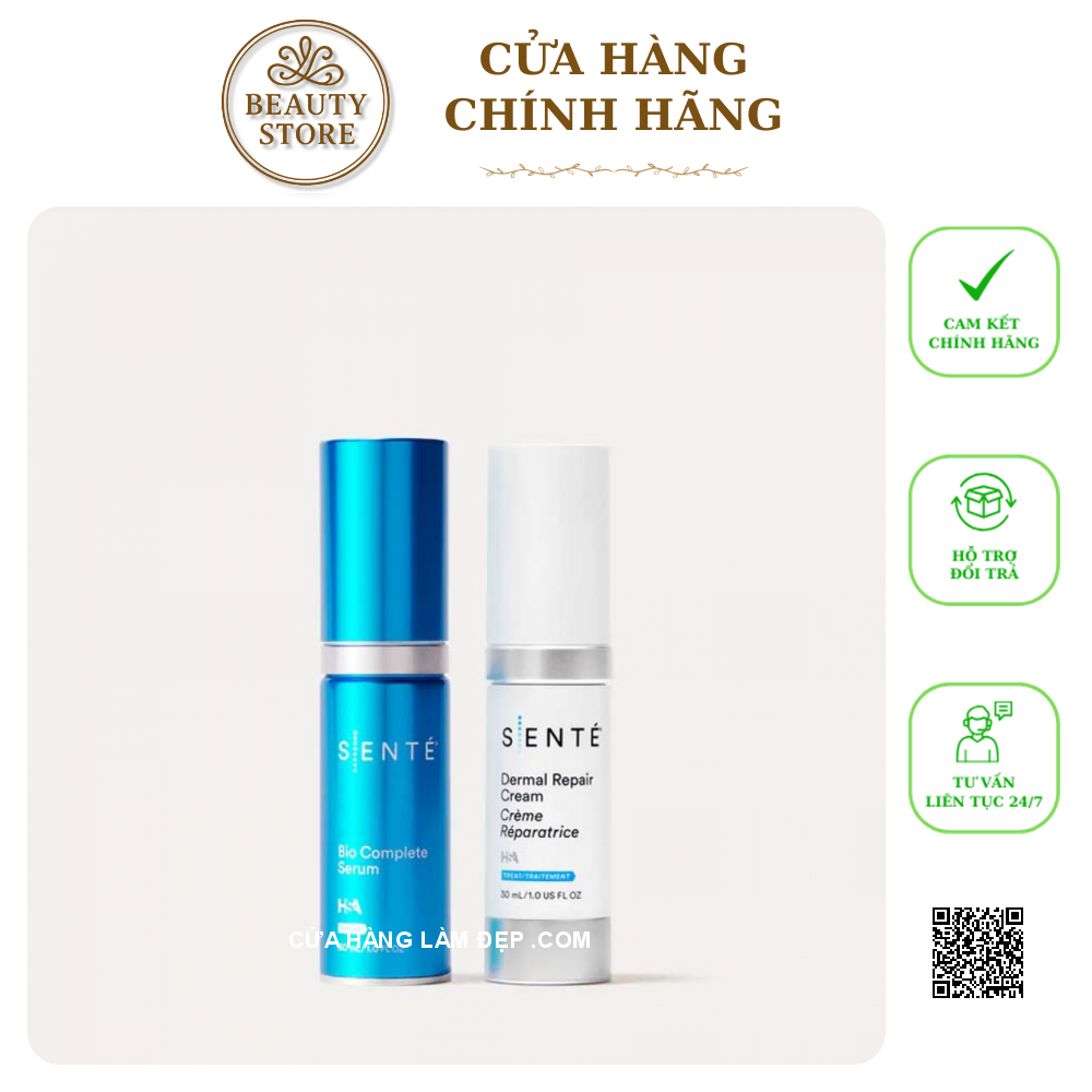 Bộ sản phẩm gồm 2 món: Sente Bio Complete Serum (30 mL / 1 fl oz) và Sente Dermal Repair Cream (50 mL / 1.7 fl oz).