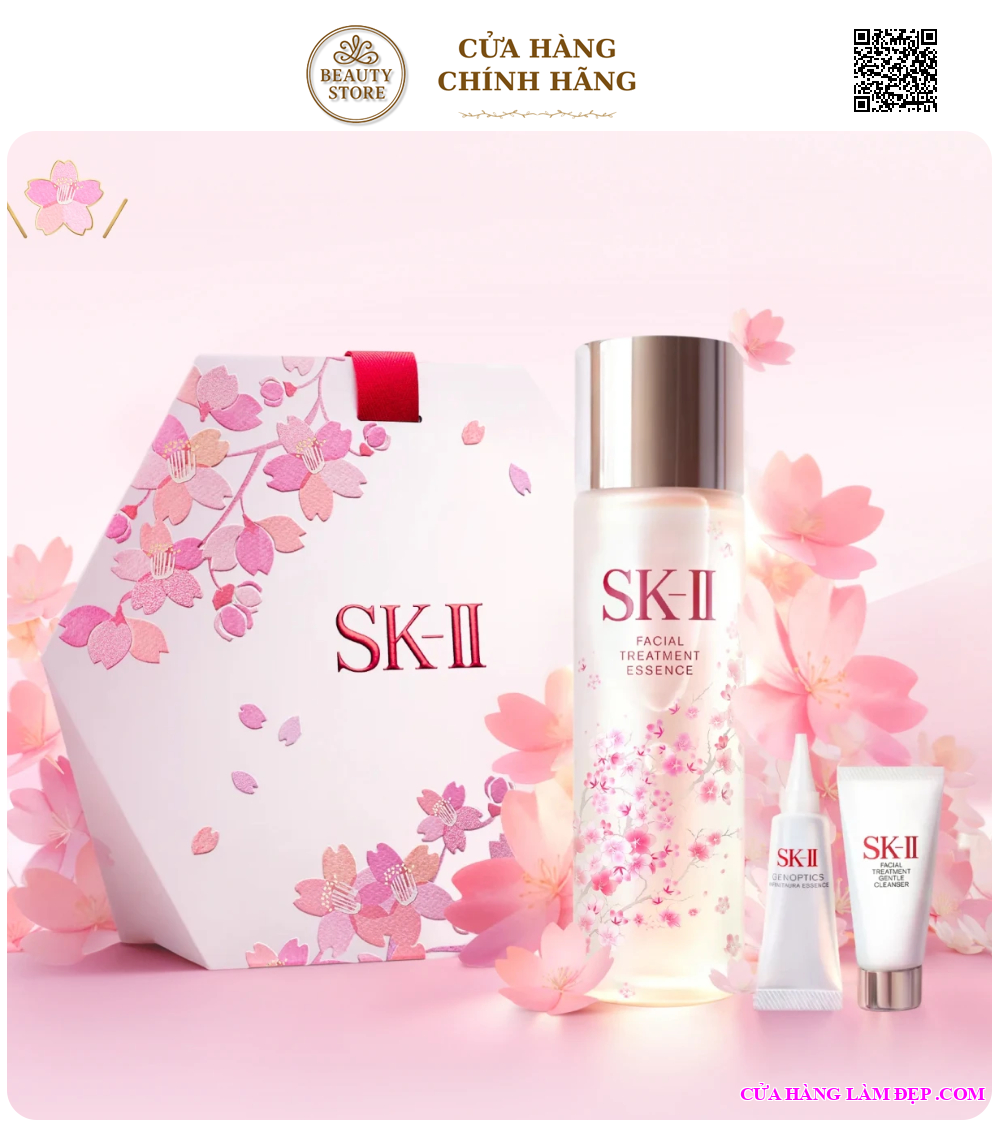 SK-II Sakura FTE New Life Trial Kit là bộ chăm sóc da phiên bản giới hạn mùa xuân, nổi bật với thiết kế chai nước thần họa tiết hoa anh đào. Bộ sản phẩm giúp thiết lập chu trình dưỡng da 3 bước cơ bản gồm dưỡng ẩm, làm sáng và cải thiện độ săn chắc, mang lại làn da trong trẻo và rạng rỡ hơn.