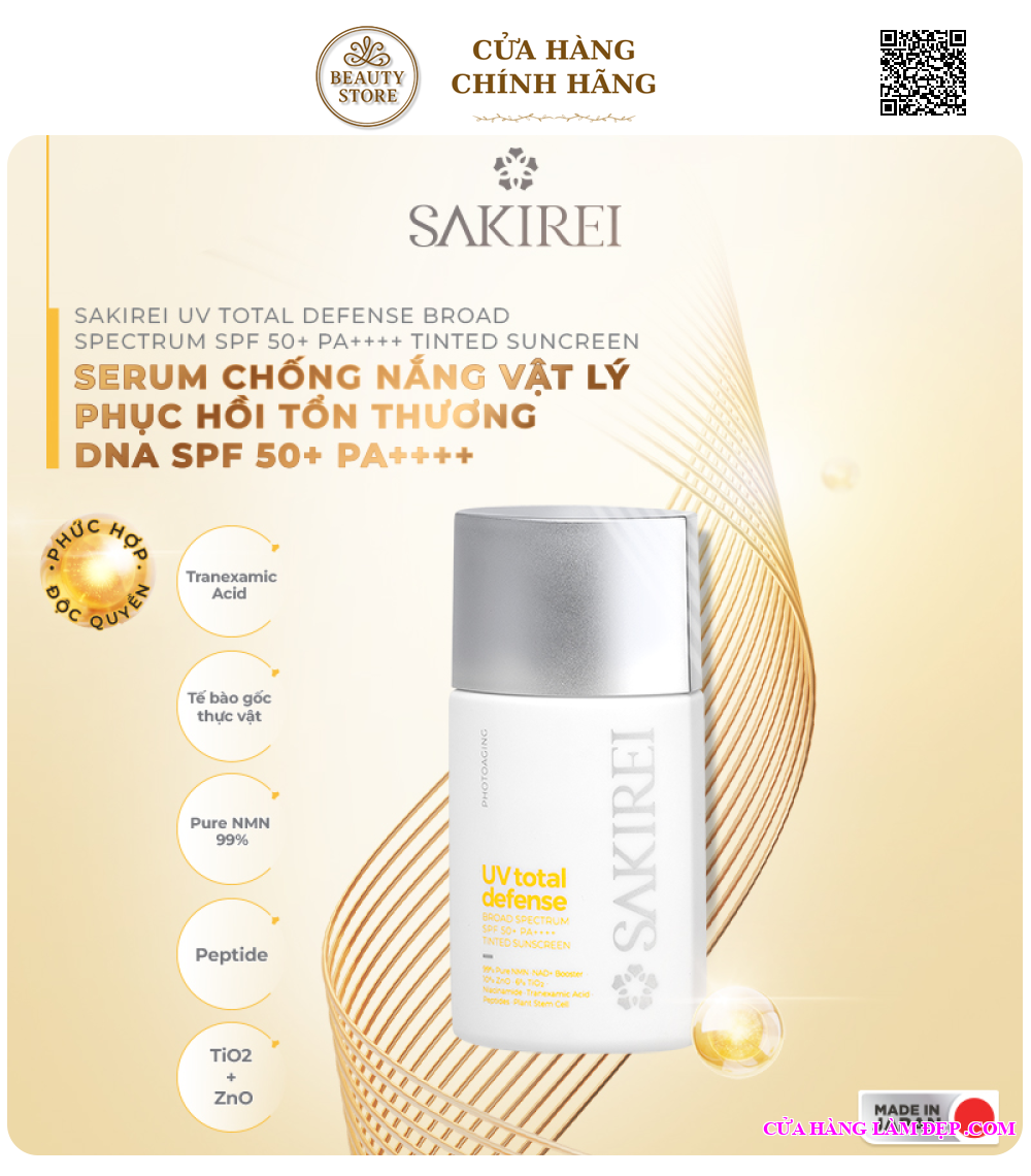 Serum chống nắng phục hồi tổn thương DNA Sakirei UV Total Defense Broad Spectrum SPF50+ PA++++ Tinted Sunscreen