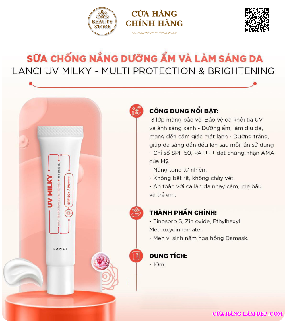 3: Sữa Chống Nắng Dưỡng Ẩm Lanci UV Milky - Multi Protection & Brightening: 10ml