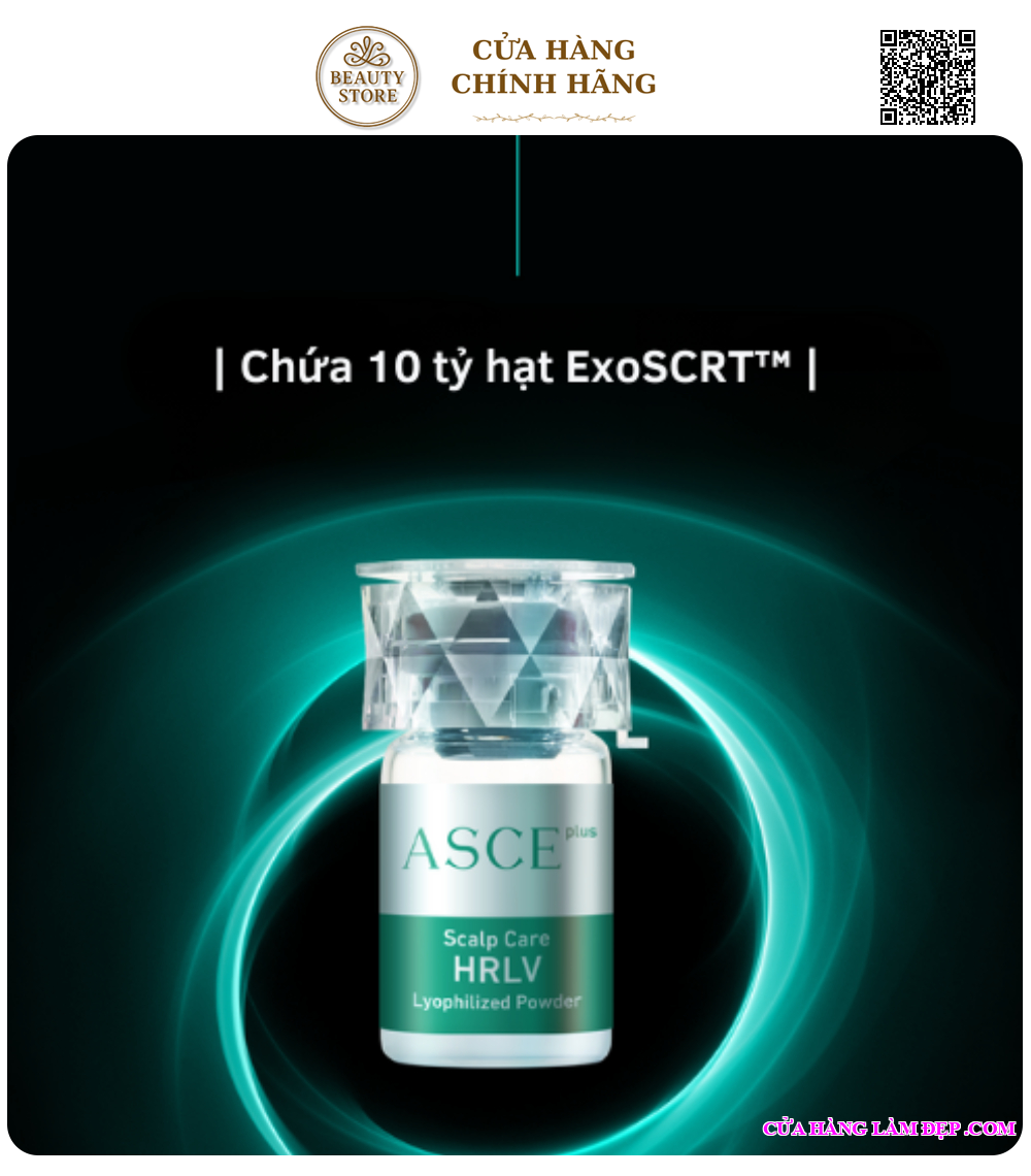 - ASCEPlus HRLV là sản phẩm chăm sóc tóc và da đầu chuyên nghiệp, được phát triển bởi ExoCobio, thương hiệu tiên phong trong lĩnh vực ứng dụng công nghệ Exosome trong y học thẩm mỹ. Sản phẩm sử dụng các Exosome được chiết xuất từ Tinh Chất Tế Bào hoa hồng, chứa đầy đủ yếu tố tăng trưởng và dưỡng chất thiết yếu, giúp nuôi dưỡng tóc và da đầu từ sâu bên trong.