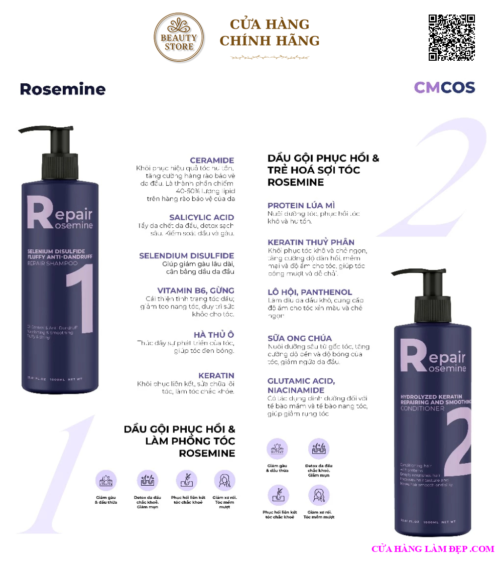 Giới Thiệu Bộ Gội Xả Rosemine Repair Phục Hồi, Làm Phồng, Ngăn Ngừa Tóc Gãy Rụng: