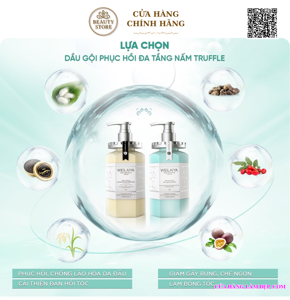 - Bộ gội xả phục hồi đa tầng Nấm Truffle Weilaiya ra đời phá vỡ các khuôn mẫu cũ, dẫn đầu trong ngành chăm sóc tóc, thiết lập khái niệm hoàn toàn mới đó là: Dầu gội không chỉ dùng để làm sạch thông thường mà còn có tác dụng phục hồi Hỗ Trợ Ngừa Lão Hóa da đầu. Da đầu khỏe mạnh chính là yếu tố quan trọng giúp tóc chắc khỏe.