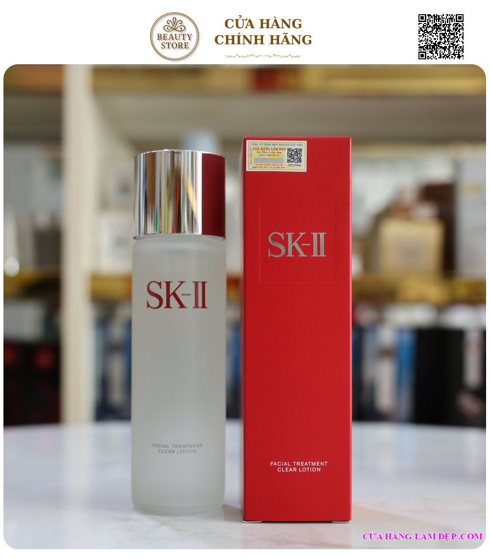 Bước 2: SK-II Facial Treatment Clear Lotion. Thấm vào bông và lau nhẹ toàn mặt để làm sạch sâu