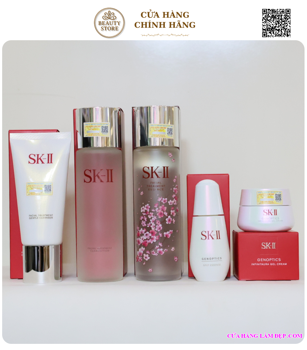 Bộ 5 món cao cấp từ SK-II là giải pháp chuyên sâu dành cho làn da nám, xỉn màu và không đều màu. Sự kết hợp giữa tinh chất đặc trị GenOptics Spot Essence và kem dưỡng GenOptics Infinitaura Gel Cream giúp tác động kép: làm mờ sắc tố – dưỡng sáng – cấp ẩm, mang lại làn da rạng rỡ và trong trẻo hơn từng ngày.
