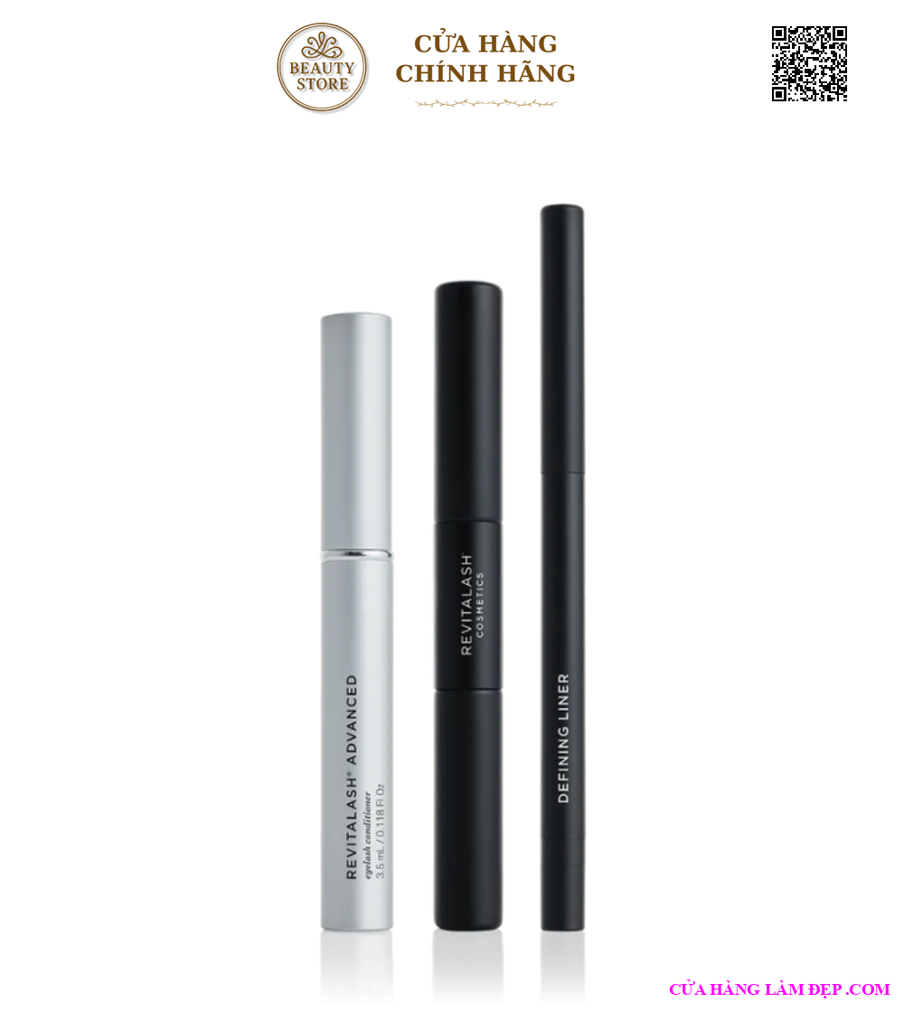 Bộ sưu tập 3 sản phẩm, bao gồm: Tinh Chất Dưỡng Dài Và Dày Mi RevitaLash® Advanced (3.5ML), Mascara 2 Đầu Làm Dày & Dài Mi Double-Ended Volume Set (5ML), và Bút Kẻ Mắt Defining Eyeliner Liner (0.3G)