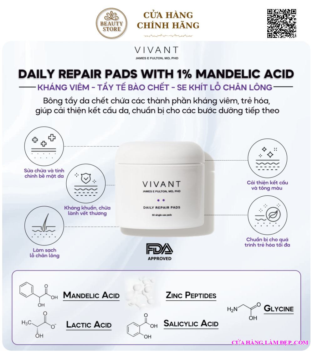Địa Chỉ Mua Bông Làm Sạch Kháng Viêm Se Khít Lỗ Chân Lông Vivant Skincare Daily Repair Pads Chính Hãng: