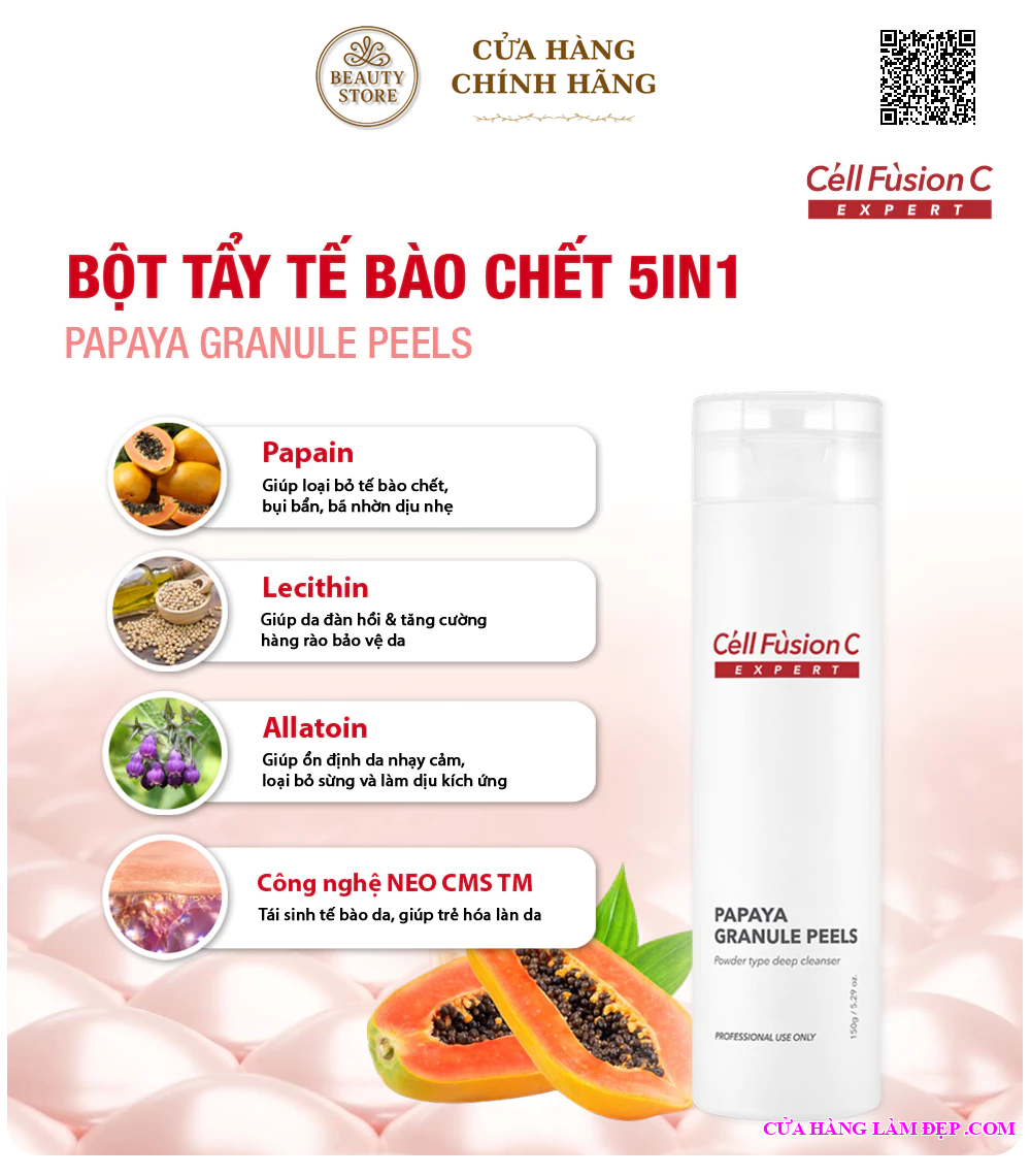 3. Công dụng Bột Tẩy Tế Bào Chết 5 Trong 1 Cell Fusion C Expert Papaya Granule Peels