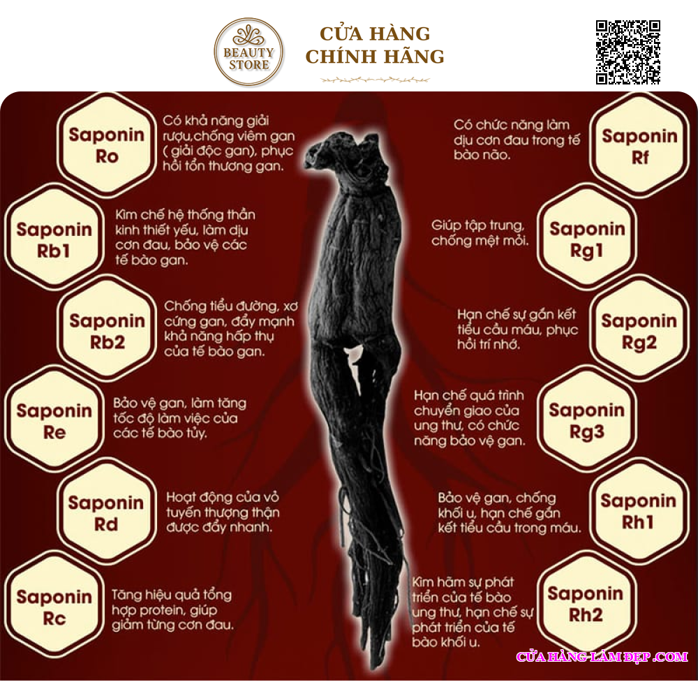 - Hàm lượng saponin trong hắc sâm có tới hơn 34 loại saponin bổ dưỡng, thành phần ginsenosides, polyphenol, maltols, … Theo nhiều nghiên cứu khoa học, Hắc sâm là sản phẩm có hàm lượng Gingsenoside cao nhất hiện nay, đặc biệt là sự xuất hiện của một số loại Gingsenoside khác mà trong hồng sâm không hề có, tiêu biểu phải kể đến như: Rb1, Rg1, Rg3.