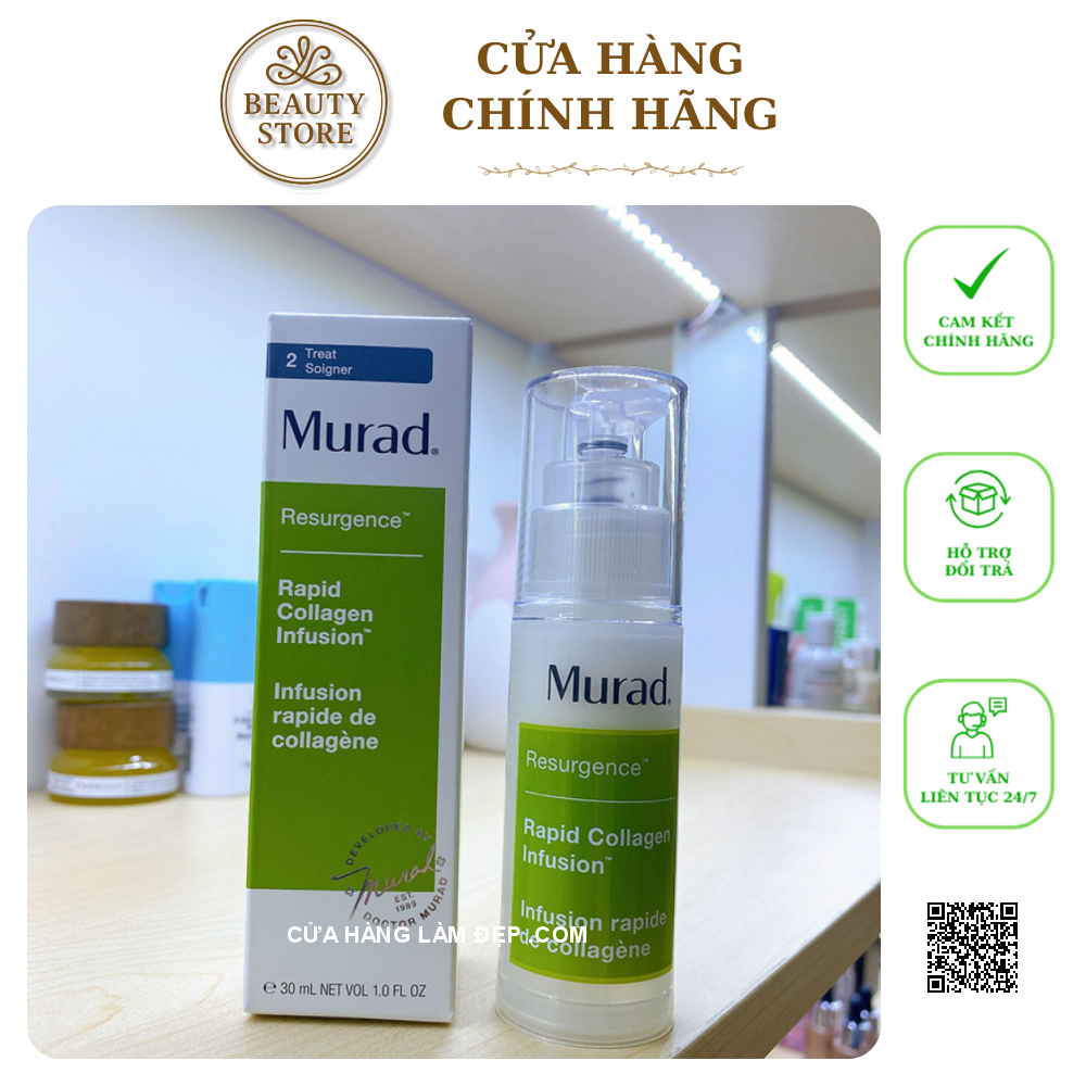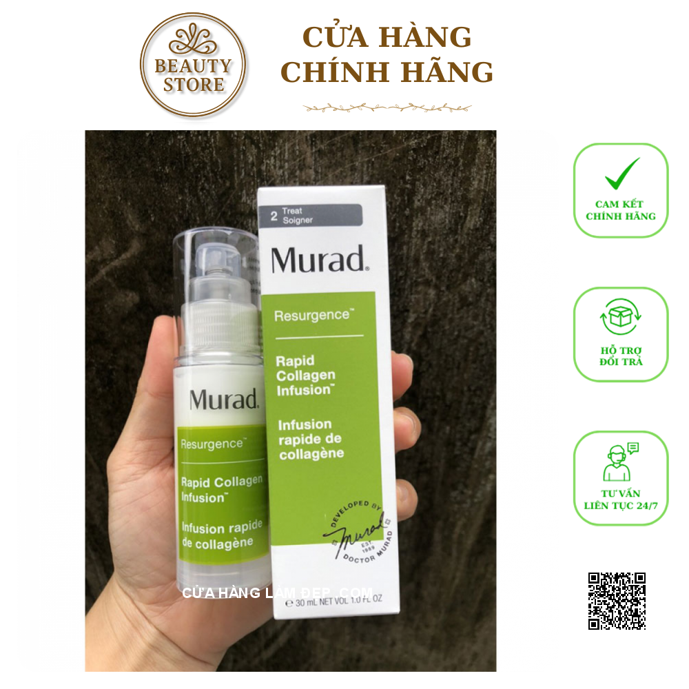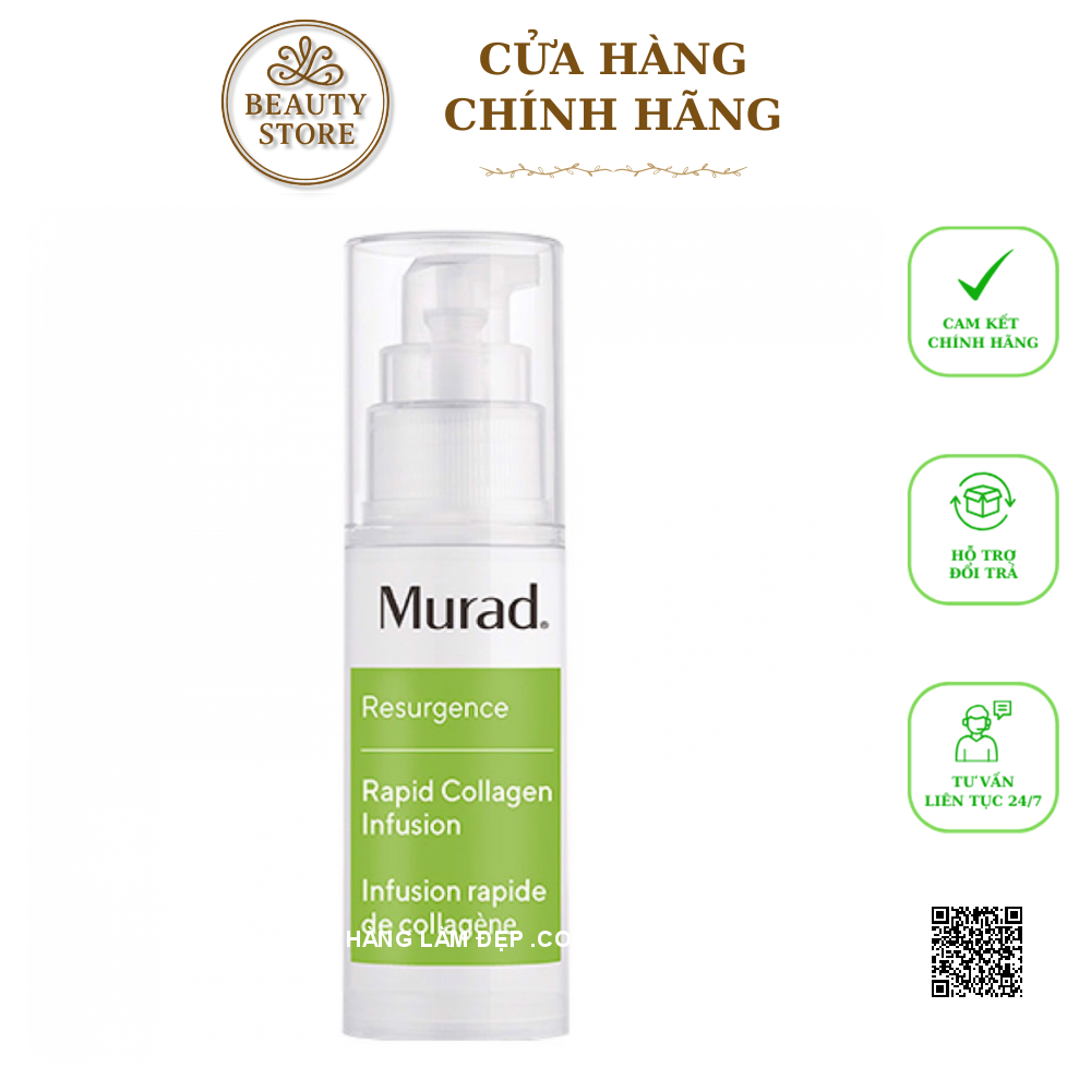- Collagen Thế Hệ Mới Murad Rapid Collagen Infusion được các chuyên gia hàng đầu Murad bào chế với công thức độc quyền Cellular Hydro-Lock®, giúp làm đầy tế bào da để là phẳng các vết chân chim, vết nhăn nhỏ, trả lại làn da mịn màng và săn chắc.