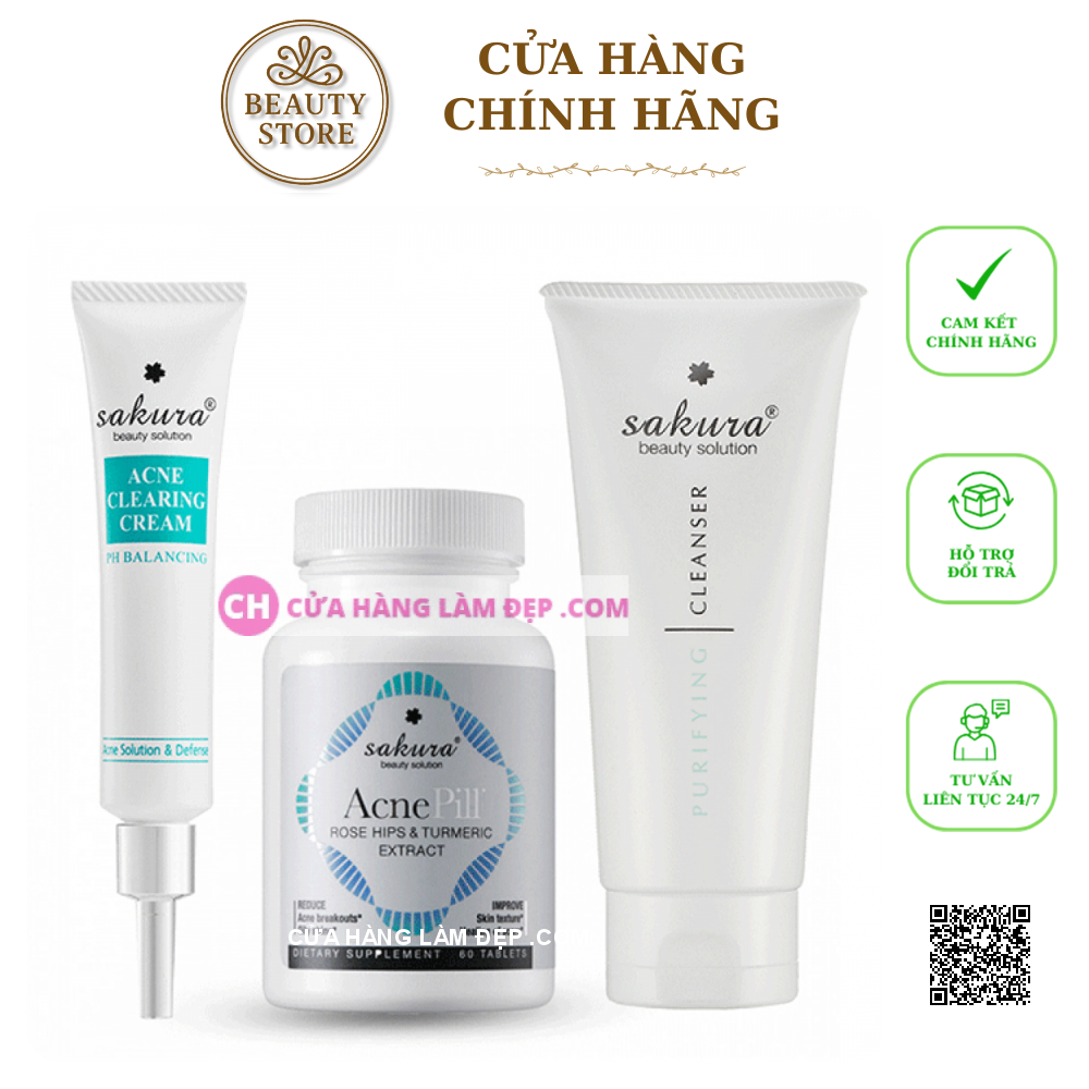 Địa chỉ mua Combo Chăm Sóc Da Mụn Sữa Rửa Mặt Da Mụn, Kem Giảm Mụn & Viên Uống Giảm Mụn Sakura Nhật Bản chính hãng tại Hà Nội :