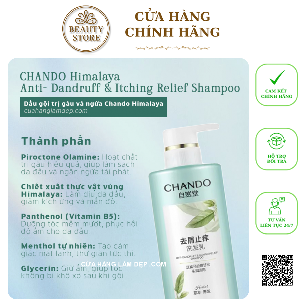 Tại hệ thống Cửa Hàng Làm Đẹp, sản phẩm Dầu Gội Chando Himalaya Anti-Dandruff & Itching Relief Shampoo Dầu Gội giảm Gàu Và Ngứa Chando Himmalaya Từ Trung Quốc có giá 420.000 VNĐ