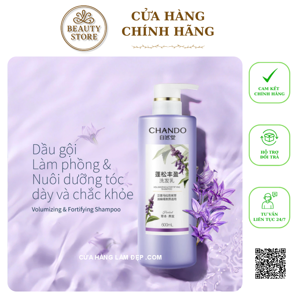 Dầu Gội Làm Phồng Nuôi Dưỡng Tóc Dày Và Chắc Khoẻ CHANDO Himalaya 600ml là sản phẩm chăm sóc tóc cao cấp đến từ thương hiệu CHANDO Himalaya – nổi tiếng với các dòng mỹ phẩm lấy cảm hứng từ sự tinh khiết và mạnh mẽ của thiên nhiên vùng núi Himalaya. Với công thức dịu nhẹ, sản phẩm giúp làm sạch sâu da đầu, kiểm soát dầu nhờn và nuôi dưỡng tóc từ gốc đến ngọn, mang lại mái tóc dày, chắc khỏe và bồng bềnh tự nhiên.
