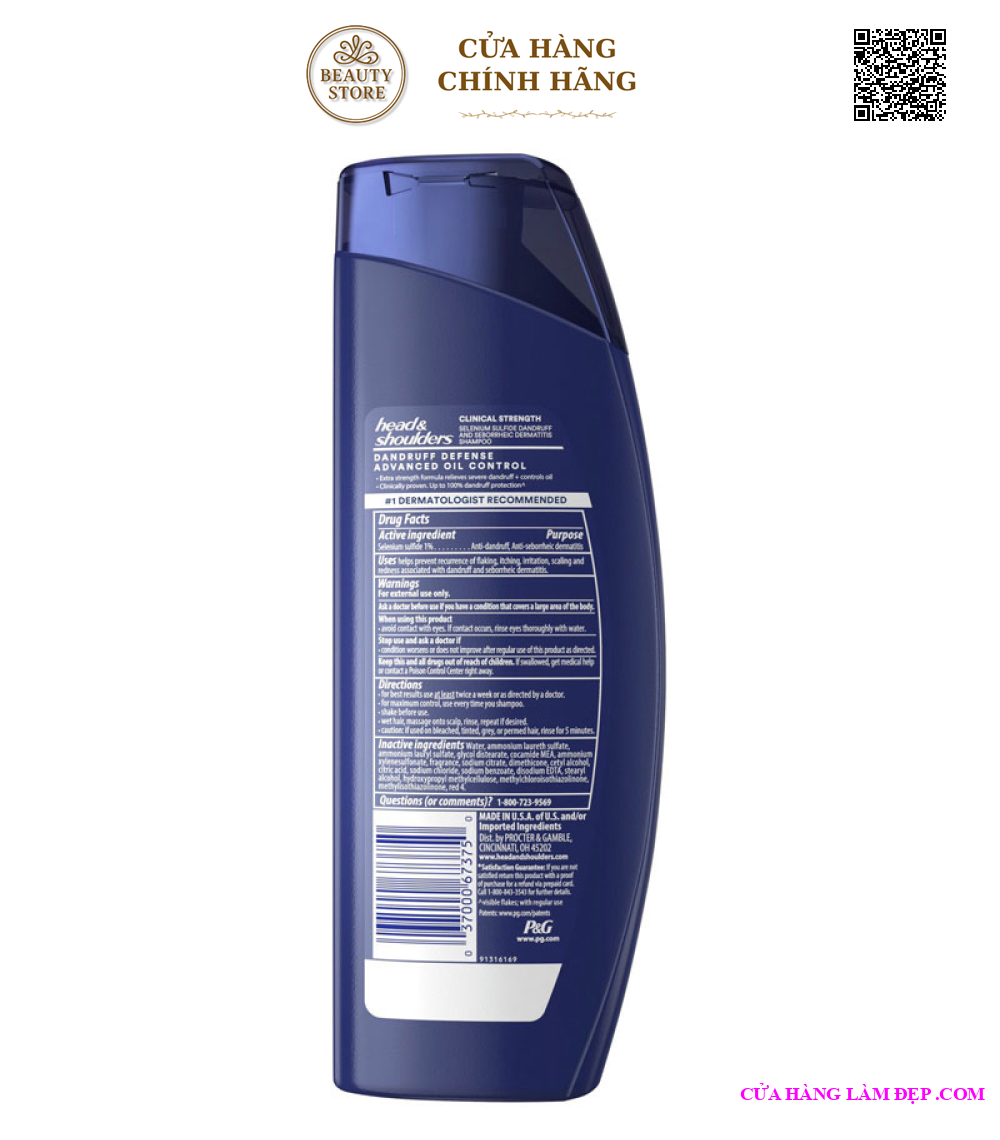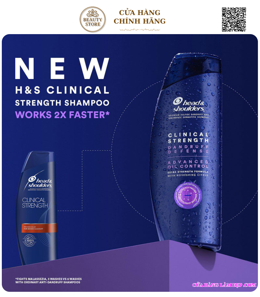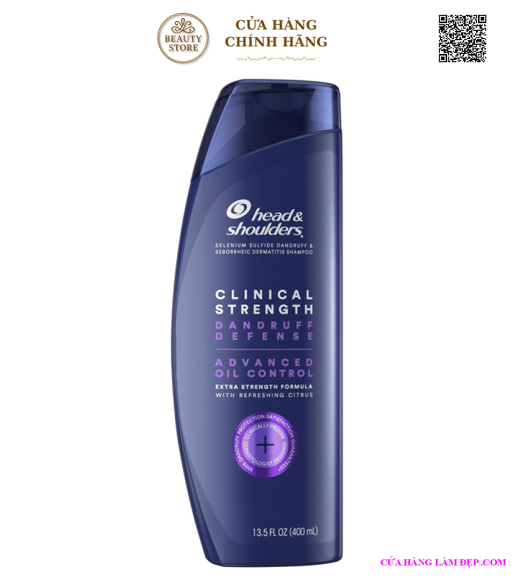 - Dầu Gội Head & Shoulders Clinical Strength Dandruff Defense Advanced Oil Control tăng cường 35% khả năng chiến đấu với gàu với công thức có 1% selenium sulfide giúp giảm gàu, hết ngứa và viêm da tiết bã nhờn nghiêm trọng.
