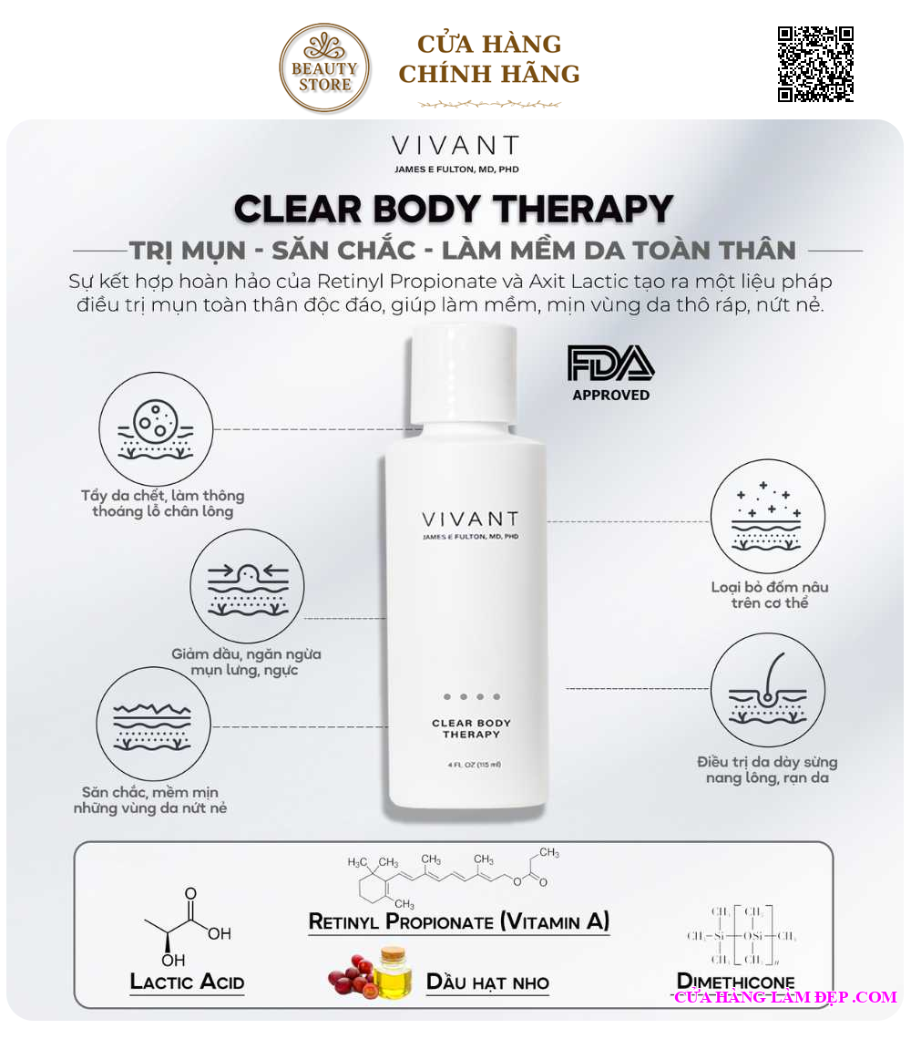 Giới Thiệu Gel Điều Giảm Mụn, Tẩy Da Chết Cơ Thể Vivant Skincar Clear Body Therapy: