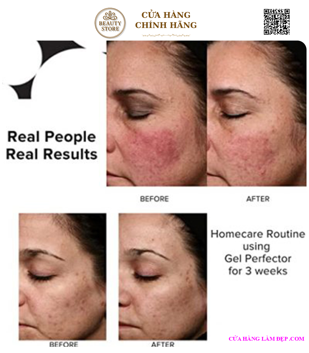 - Bôi trực tiếp Gel Perfector lên các vùng bị tổn thương để kiểm soát từng nốt mụn và vết thâm, lên vùng có lỗ chân lông bít tắc