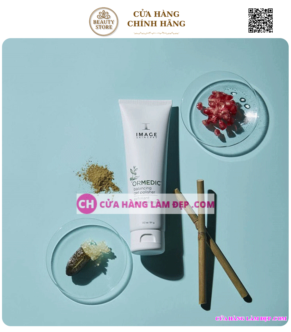 - Image Ormedic Balancing Gel Polisher là dòng gel tẩy tế bào chết dạng hạt 3 trong 1 với cơ chế vật lý, chứa enzyme lựu và AHA giúp làm mềm da, lấy đi nhẹ nhàng tế bào chết trên bề mặt da. Đồng thời còn làm đều màu da, giúp da căng bóng, mịn màng và tươi sáng rạng rỡ hơn.