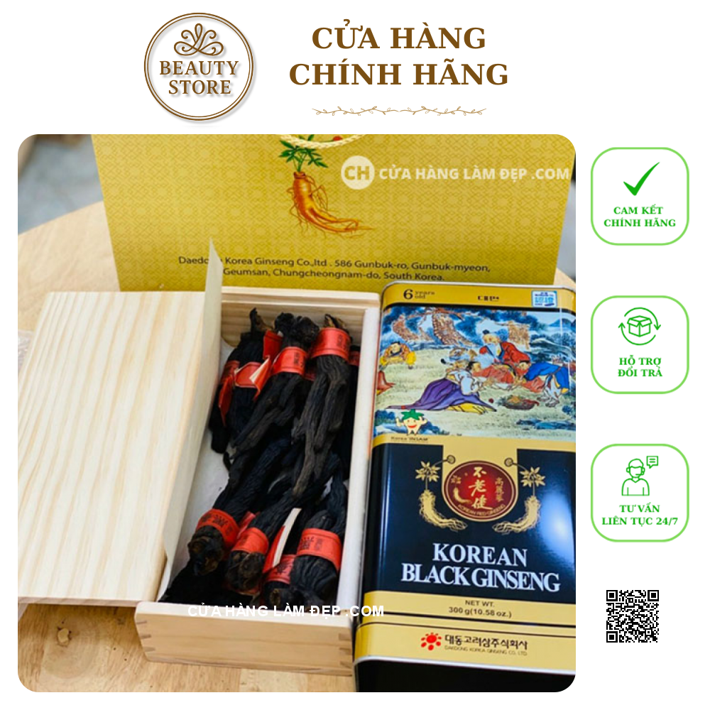 Hắc Sâm Củ Khô Hàn Quốc DAEDONG có giá 6.200.000đ (300g 11 đến 25 củ ) 3.400.000đ (150g 16 đến 25 củ )