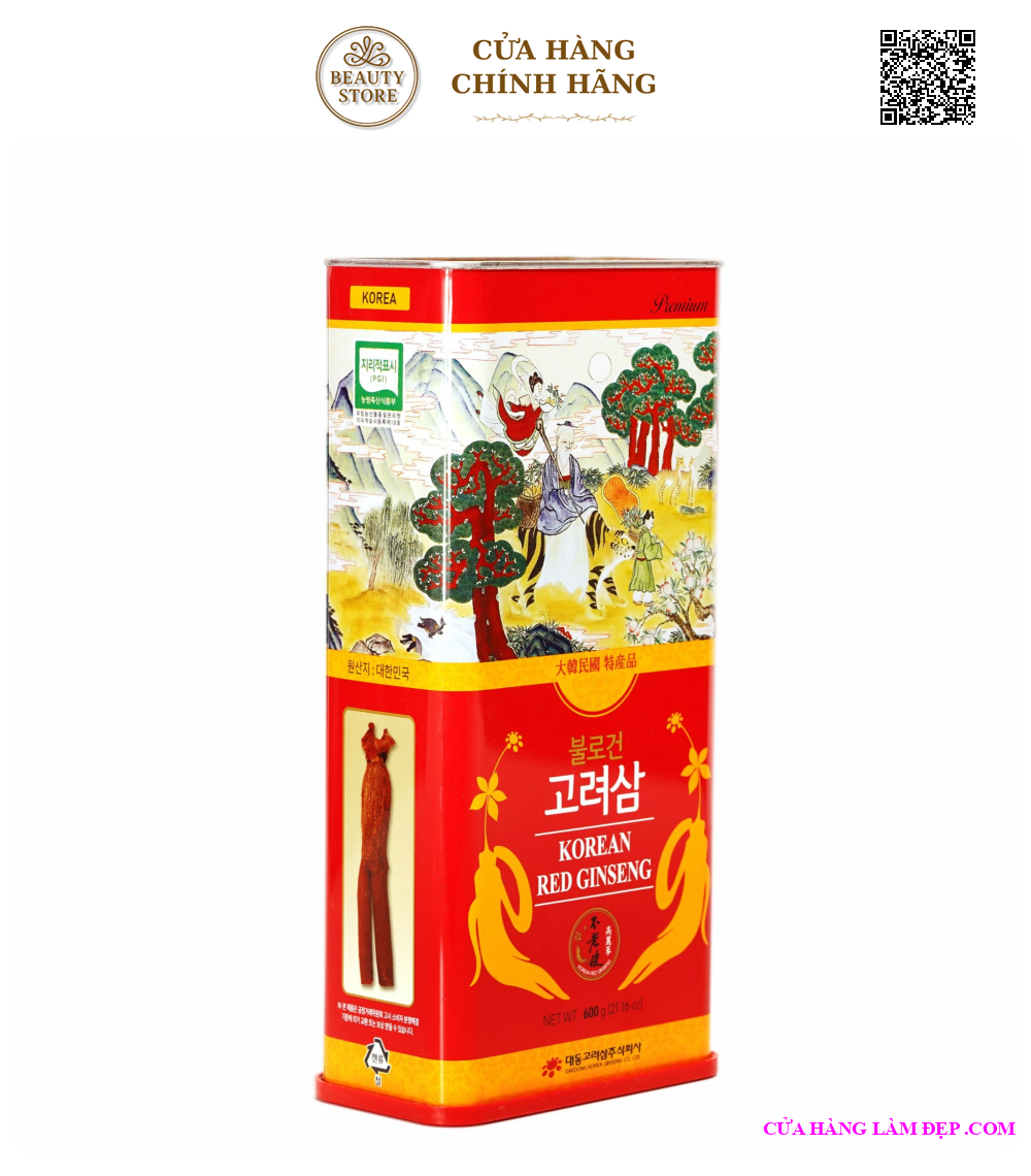 Tại hệ thống Cửa hàng làm đẹp, Hồng Sâm Củ Khô Daedong Korean Red Ginseng Hộp Thiếc 600g (21-40 Củ) có giá: 4.950.000 VND