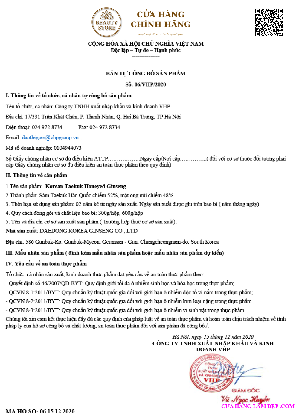 *Lưu ý : tem giả trên thị trường sẽ không có tên công ty in trên Tem*