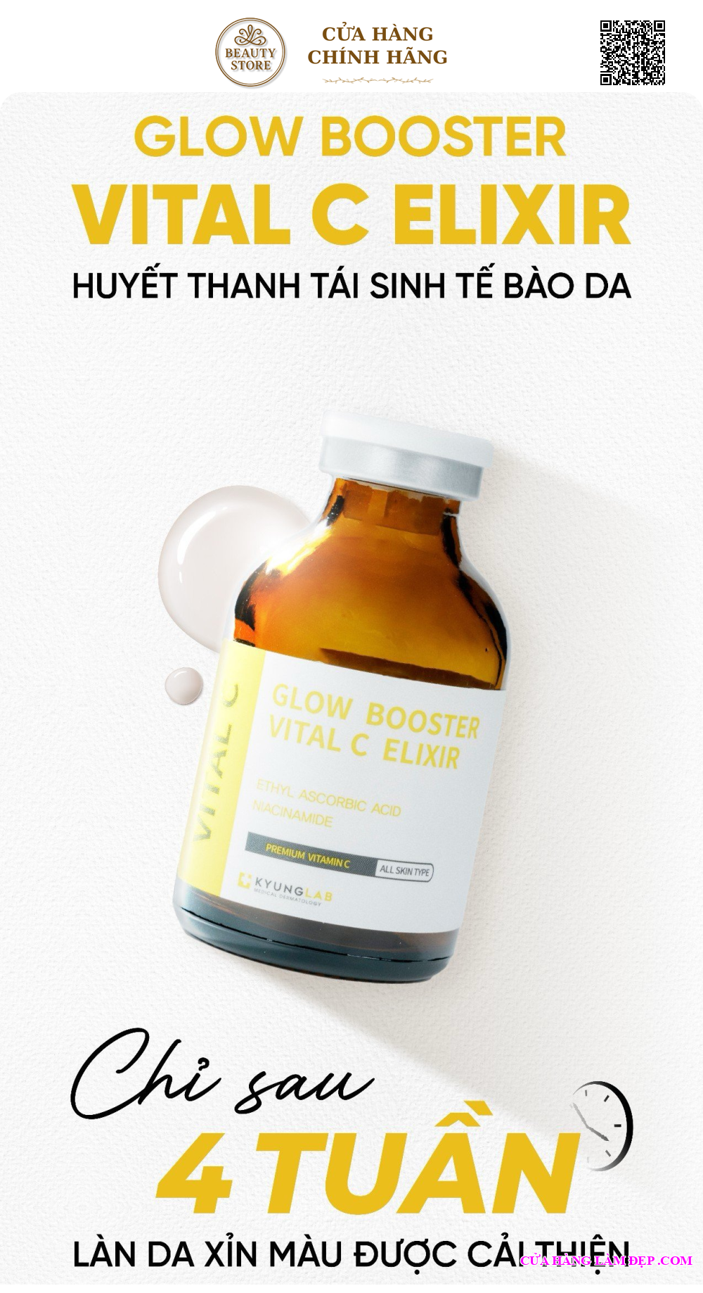 - Bạn có thể tìm mua Huyết Thanh Tái Sinh Tế Bào Da KyungLab Glow Booster Vital C Elixirr qua website: cuahanglamdep.com