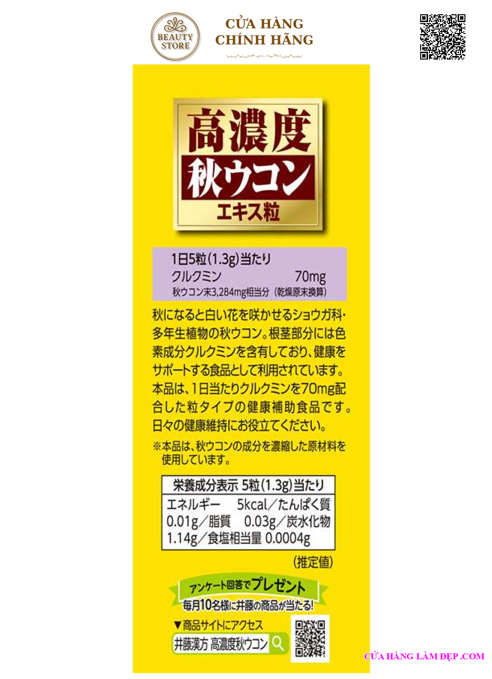 Itoh Kanpo Viên uống tinh chất nghệ cô đặc Curcuma Longa được khách hàng của Hệ Thống Cửa Hàng Làm Đẹp đánh giá cao.