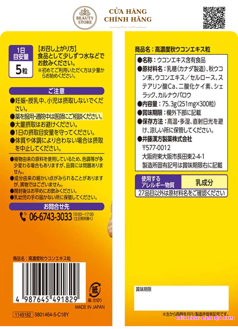 Địa chỉ mua Itoh Kanpo Viên uống tinh chất nghệ cô đặc Curcuma Longa lọ 300 viên từ Nhật Bản chính hãng tại Hà Nội :