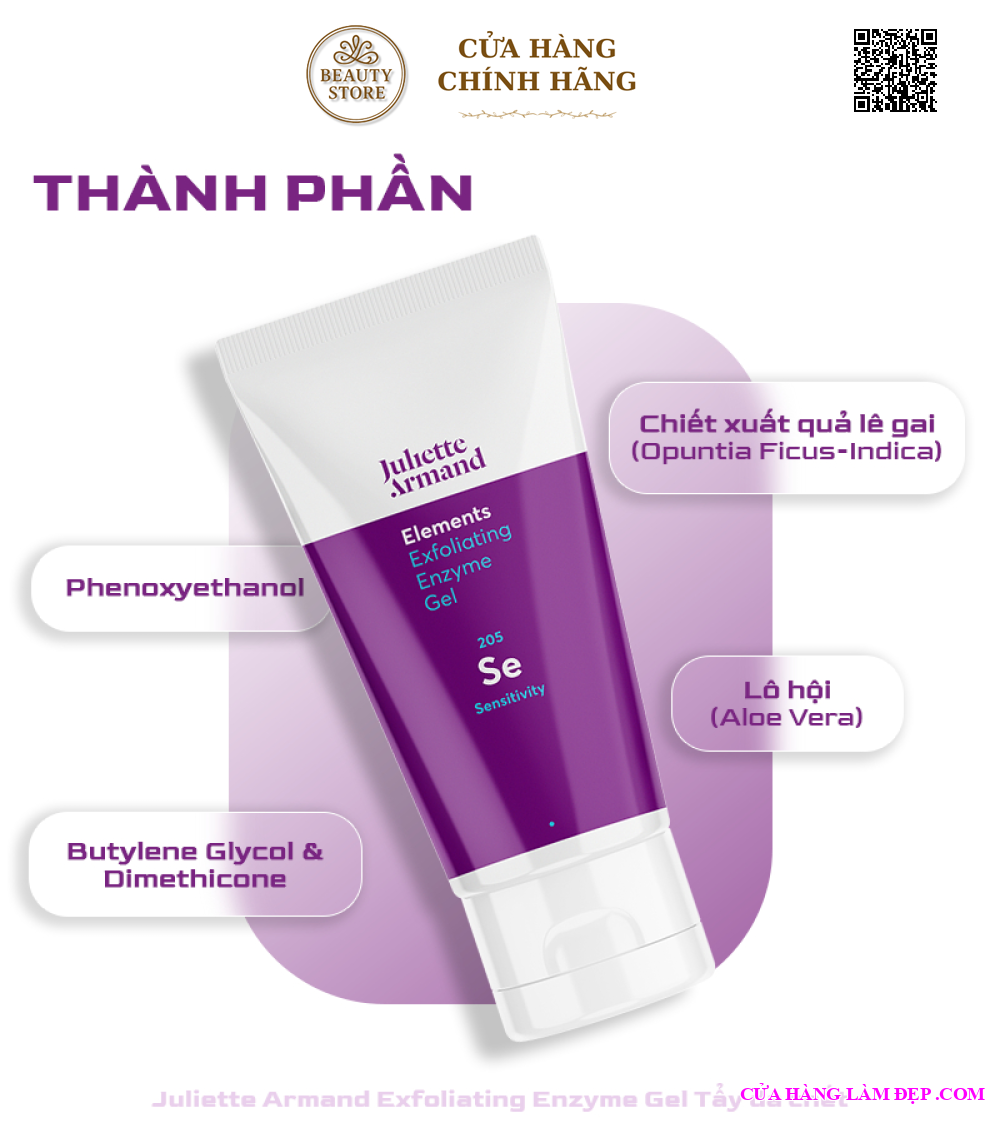 Exfoliating Enzyme Gel Juliette Armand là sản phẩm tẩy da chết cao cấp đến từ thương hiệu dược mỹ phẩm Juliette Armand – nổi tiếng với các dòng chăm sóc da chuyên sâu, an toàn cho cả làn da nhạy cảm. Sản phẩm sử dụng enzym từ quả lê gai kết hợp cùng lô hội và urea, giúp loại bỏ tế bào chết nhẹ nhàng, làm sáng da, giảm nếp nhăn và tăng cường độ ẩm mà không gây kích ứng.