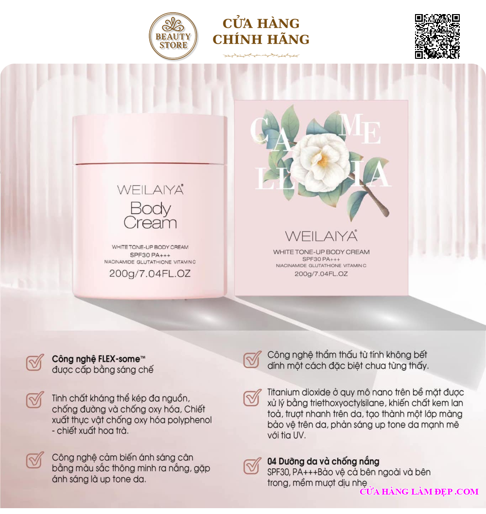 Kem Body Weilaiya Body Cream White Tone-Up SPF30 PA+++ Kích Trắng Nâng Tone 200g được khách hàng của Hệ Thống Cửa Hàng Làm Đẹp đánh giá cao.