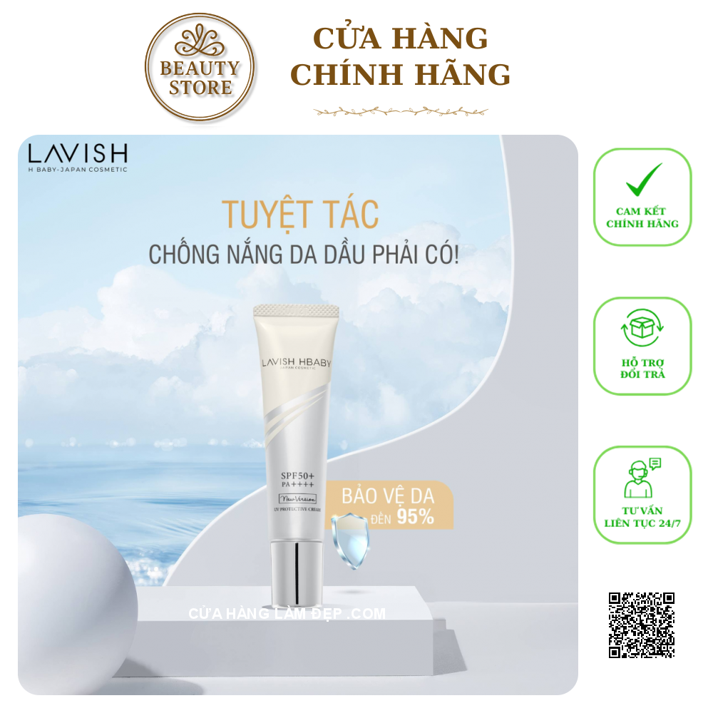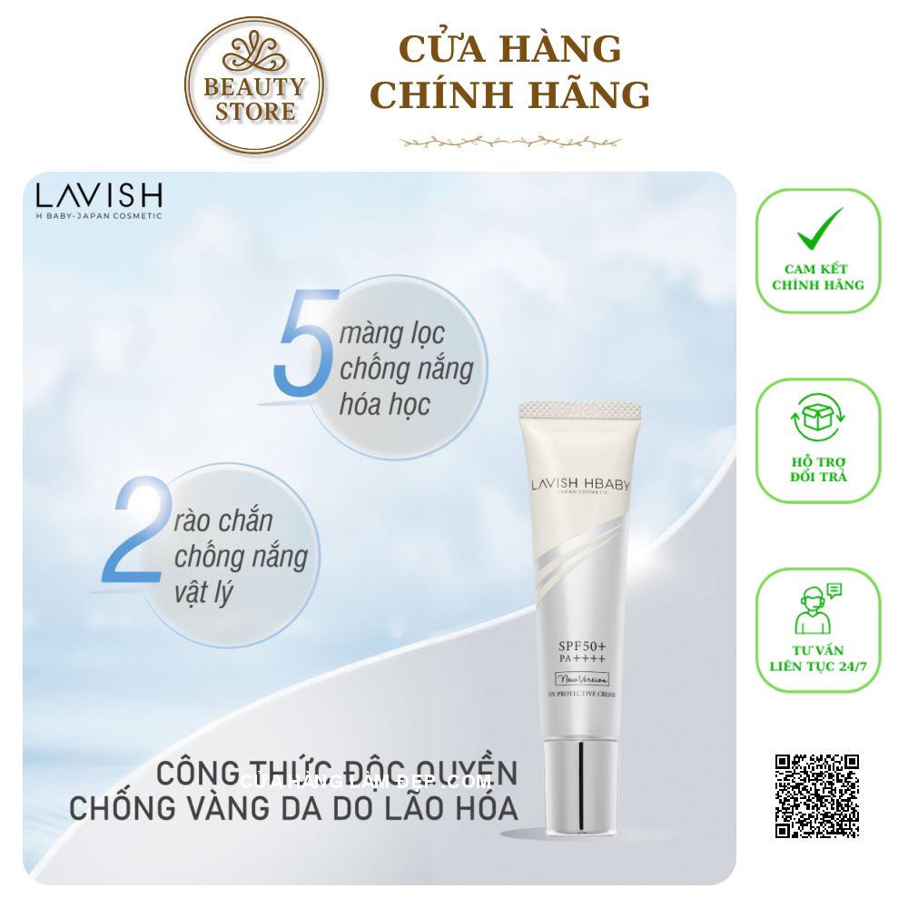 Siêu phẩm Kem Chống Nắng 7 Tầng Lavish H Baby UV Protective Cream SPF50+ PA++++ New Version với 7 màng lọc kết hợp giữa chống nắng vật lý & chống nắng hóa học thế hệ mới; mang đến hiệu quả bảo vệ da khỏi tia UVB lên đến 98% suốt 8 giờ và UVA đến 95% suốt 16 giờ.