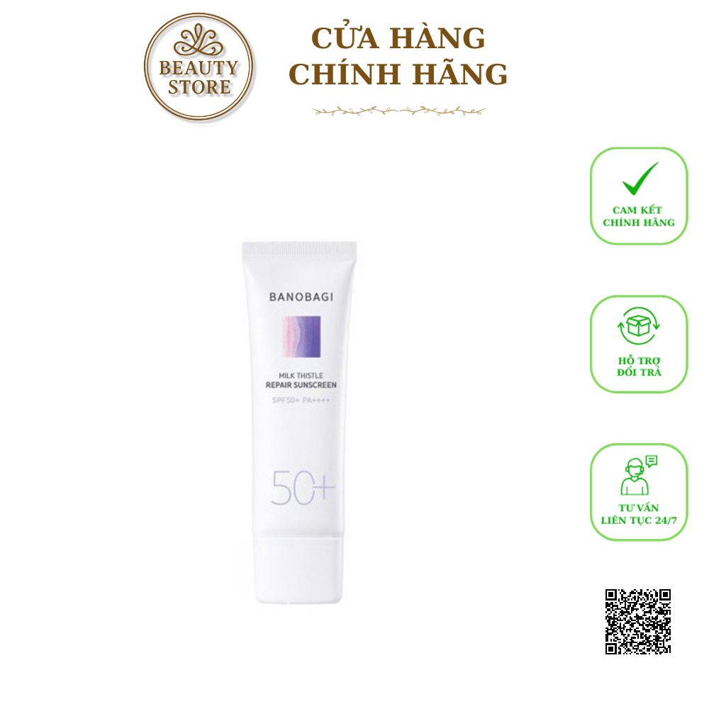 - Kem Chống Nắng Banobagi Milk Thistle Repair Sunscreen SPF50+ PA++++ giúp bảo vệ da với chiết xuất cây kế sữa chống tia UV, làm mờ vết thâm và được kiểm nghiệm da liễu. 2 công dụng dưỡng ẩm và chống nắng trong cùng 1 sản phẩm, bước cuối cùng để chăm sóc da buổi sáng tạo lá chắn an toàn cho làn da để chống tia cực tím và dưỡng ẩm hiệu quả.