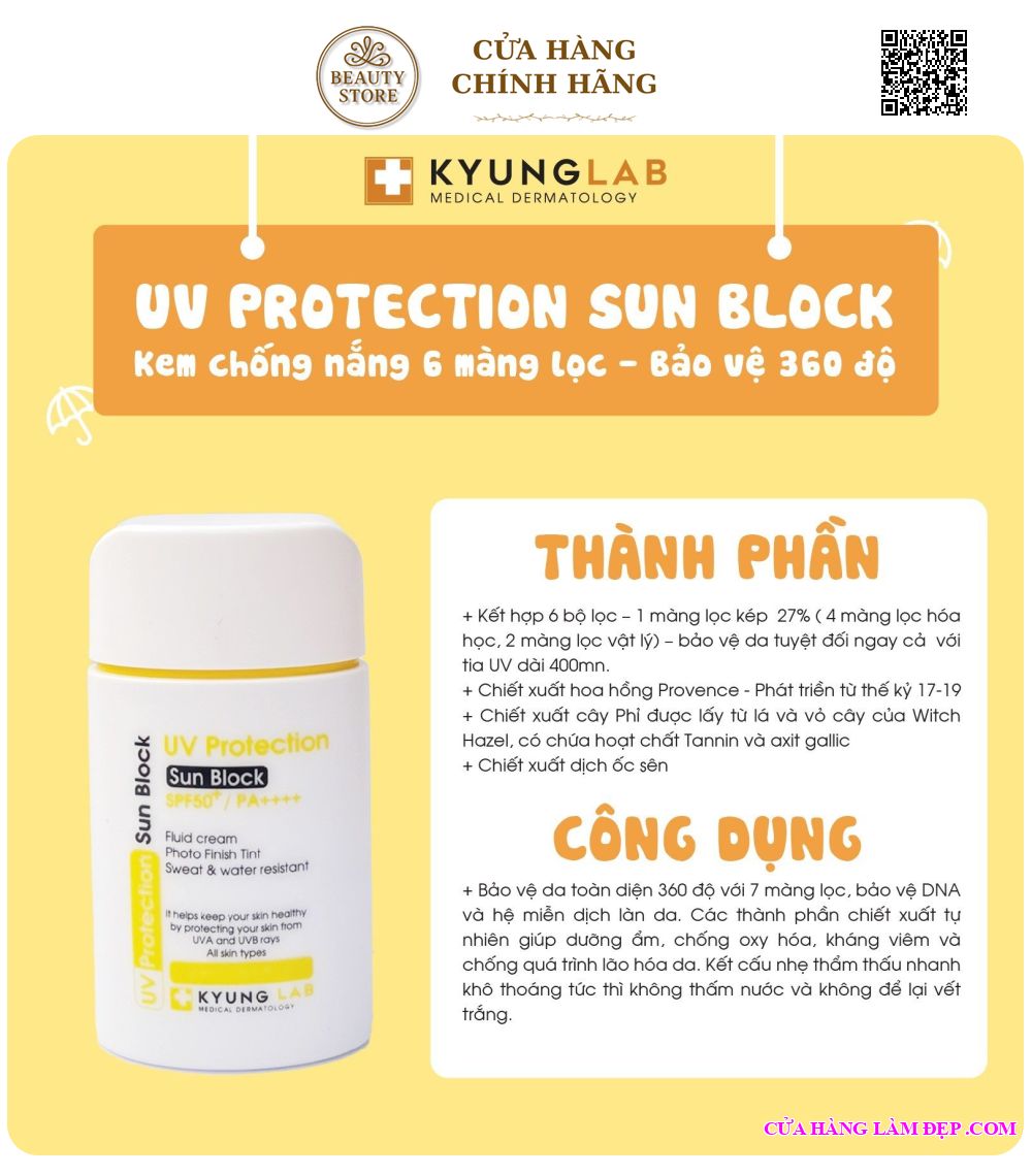 - Kem Kyung lab Uv Protection Sun Block là một trong những sự lựa chọn tuyệt vời cho các chị em đang có nhu cầu tìm kiếm sản phẩm chống nắng an toàn, không gây hại cho da.