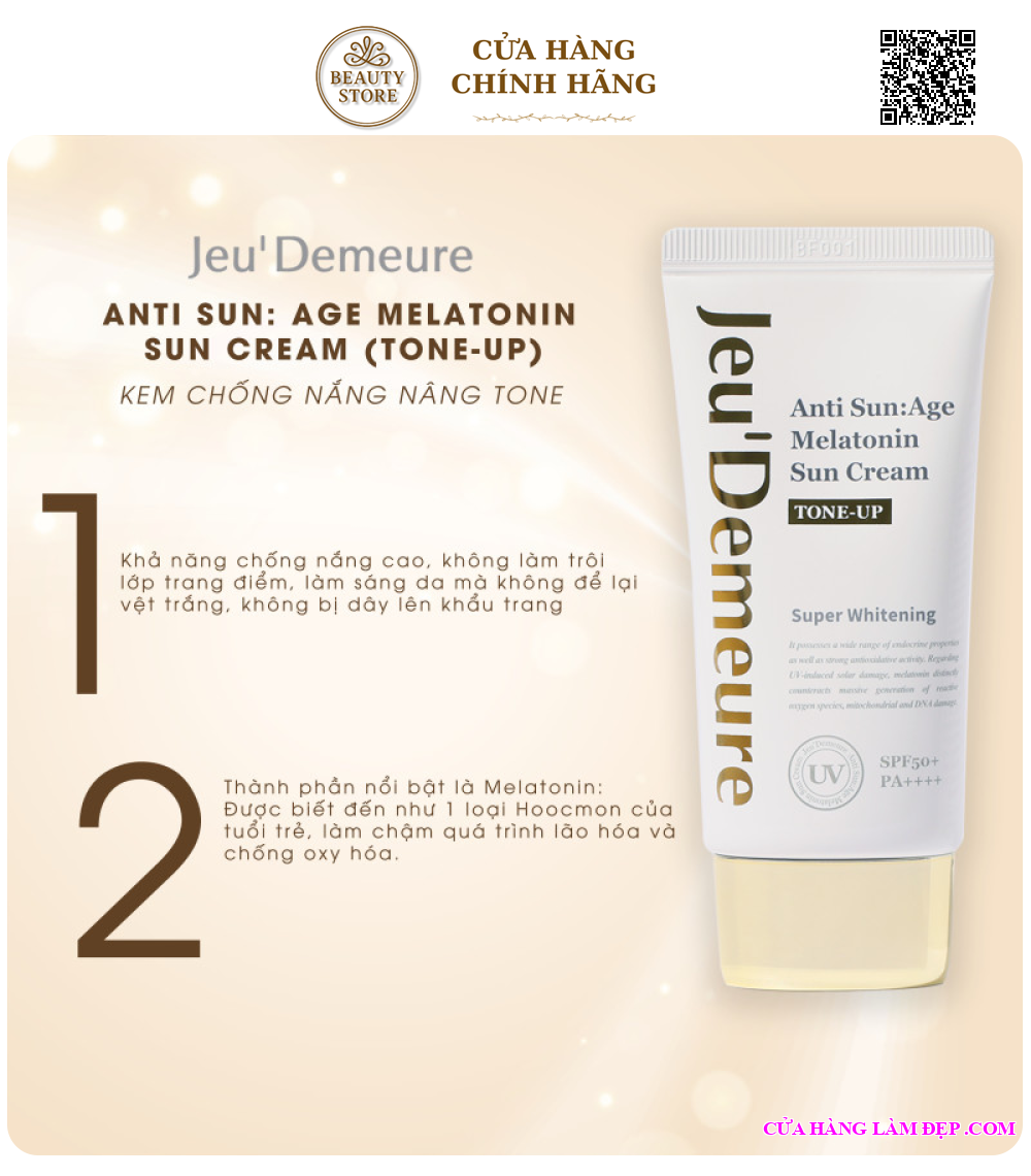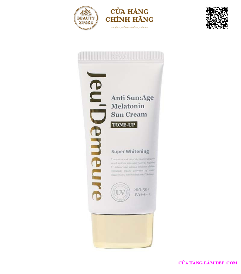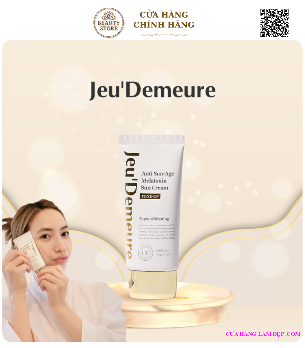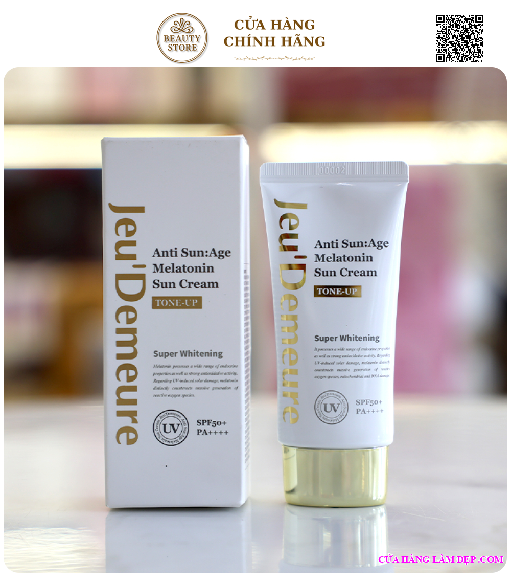 Tại hệ thống Cửa Hàng Làm Đẹp, sản phẩm Kem Chống Nắng Nâng Tone Jeu'demeure Anti Sun:Age Melatonin Sun Cream Tone-Up SPF 50+++ Từ Hàn Quốc 50g có giá 700.000 VNĐ