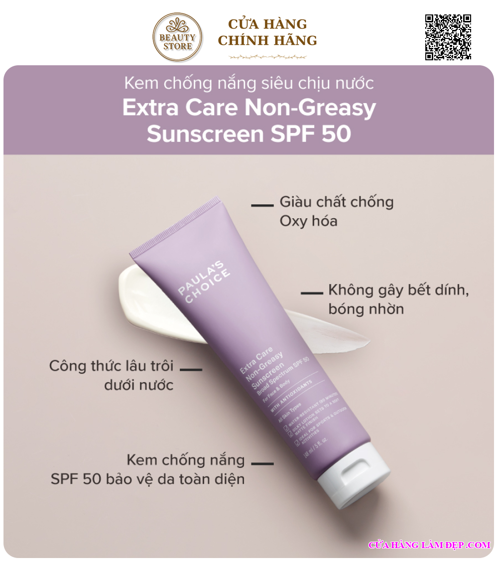 - Bạn có thể tìm mua Kem Chống Nắng Siêu Chịu Nước Paula’s Choice Extra Care Non-Greasy Sunscreen SPF50 qua website: cuahanglamdep.com