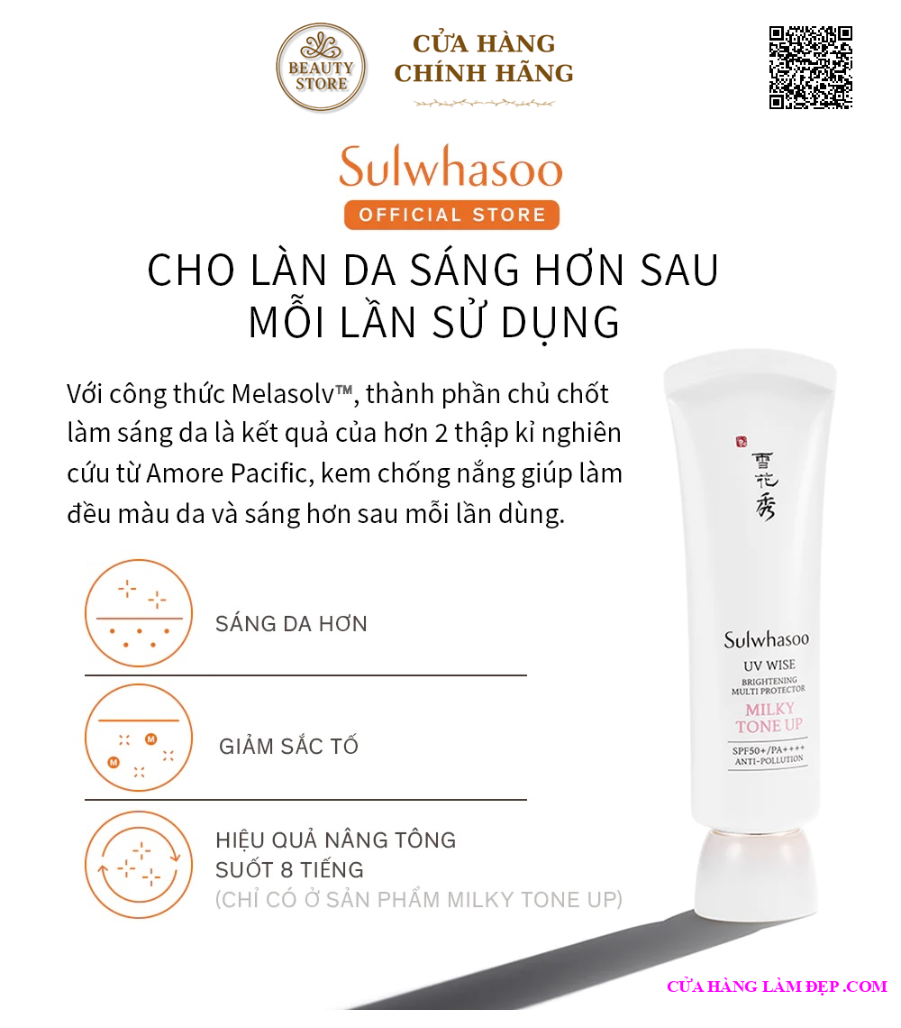 - Bạn có thể tìm mua Kem Chống Nắng Sulwhasoo UV Wise Brightening Multi Protector Milky Tone Up SPF50+/PA++++ qua website: cuahanglamdep.com