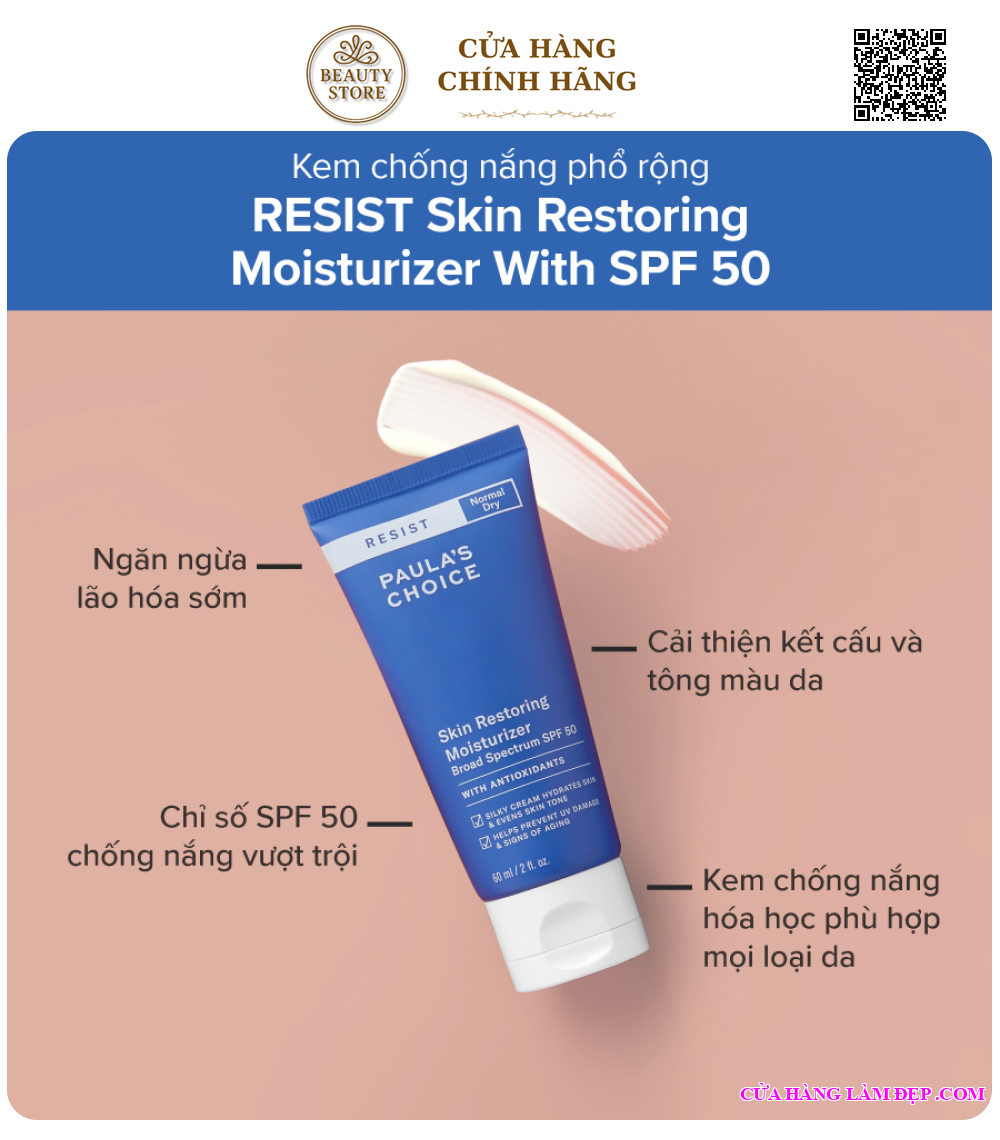 - Bạn có thể tìm mua Kem Dưỡng Ẩm Chống Nắng Paula’s Choice Resist Skin Restoring Moisturizer SPF50 qua website: cuahanglamdep.com