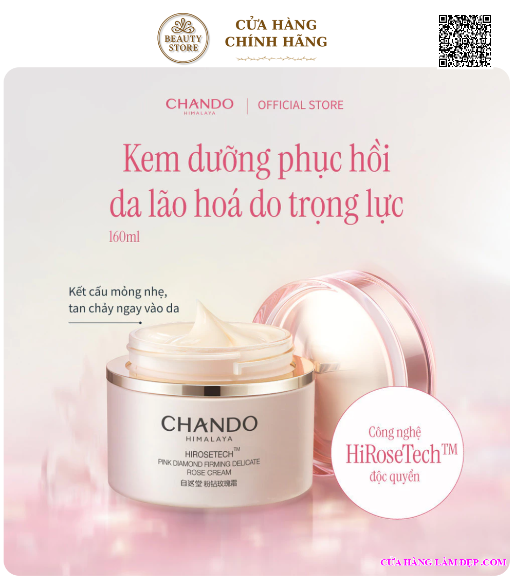 Tại hệ thống Cửa Hàng Làm Đẹp, sản phẩm Kem Dưỡng CHANDO Himalaya Giúp Phục Hồi Lão Hóa Do Trọng Lực Chứa Tinh Chất Tế Bào Hoa Hồng 55g Từ Trung Quốc có giá 1.235.000 VNĐ