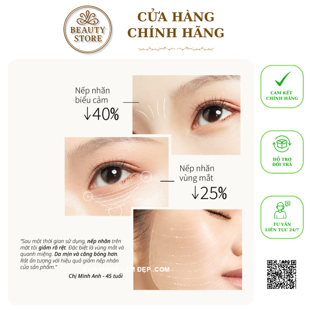 Với công thức giàu dưỡng chất kết hợp giữa các hoạt chất chống oxy hóa và chiết xuất thực vật, sản phẩm giúp phục hồi làn da mệt mỏi, tăng độ săn chắc và mang lại vẻ ngoài tươi trẻ, rạng rỡ. Kết cấu kem mềm mịn, thẩm thấu nhanh, không gây nhờn rít, phù hợp với nhiều loại da.