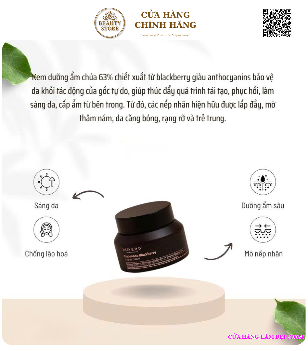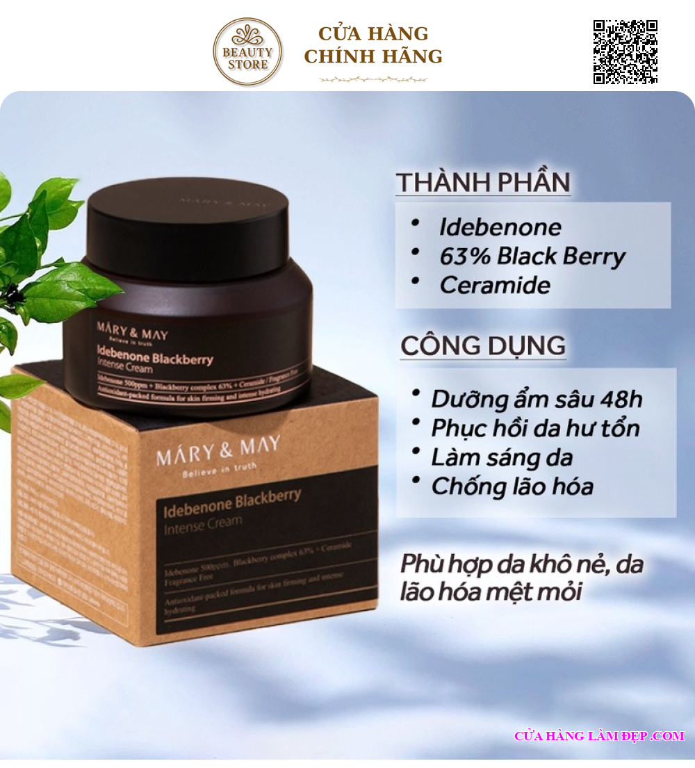 Kem Dưỡng Chuyên Sâu Mary&May Idebenone + Blackberry Complex Intense Cream 70g Hàn Quốc được khách hàng của Hệ Thống Cửa Hàng Làm Đẹp đánh giá cao. Bạn có thể xem thêm nội dung đánh giá dưới phần bình luận