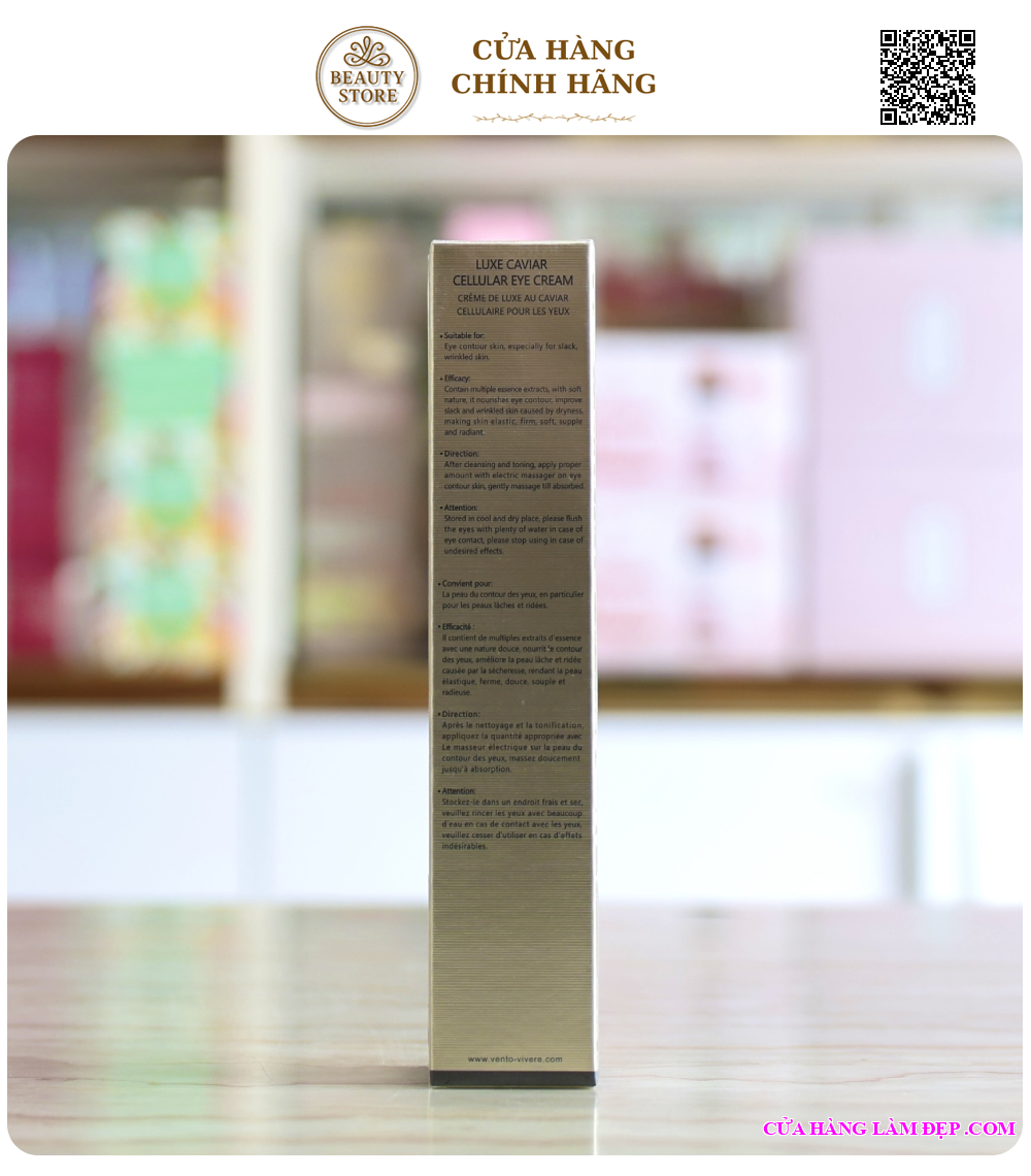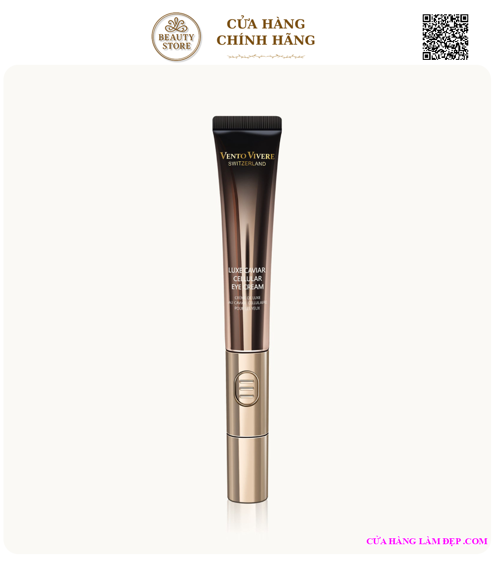 - Nối tiếp những siêu phẩm dưỡng da mặt Vento Vivere đưa ra 1 siêu phẩm dành riêng cho vùng đặc biệt nhạy cảm là mắt. Kem Dưỡng Da Vùng Mắt Vento Vivere Switzerland Luxe Caviar Cellular Eye Cream kết hợp đầu rung massage tần số thúc đẩy tinh chất thẩm thấu và hiệu quả được nâng cao hơn so với sản phẩm dưỡng thông thường.