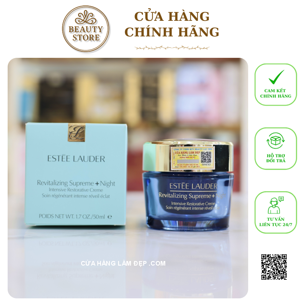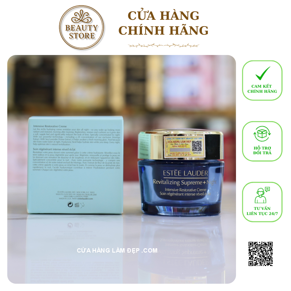 - Kem dưỡng đêm chống lão hóa và phục hồi chuyên sâu Estee Lauder Revitalizing Supreme+ Night Intensive Restorative Creme là kem dưỡng giàu dưỡng chất, độ ẩm cho da và đa tác động với công thức dưỡng đêm chuyên biệt, giúp da bạn săn chắc và giảm thiểu nếp nhăn trong giấc ngủ.
