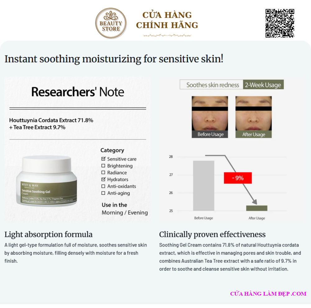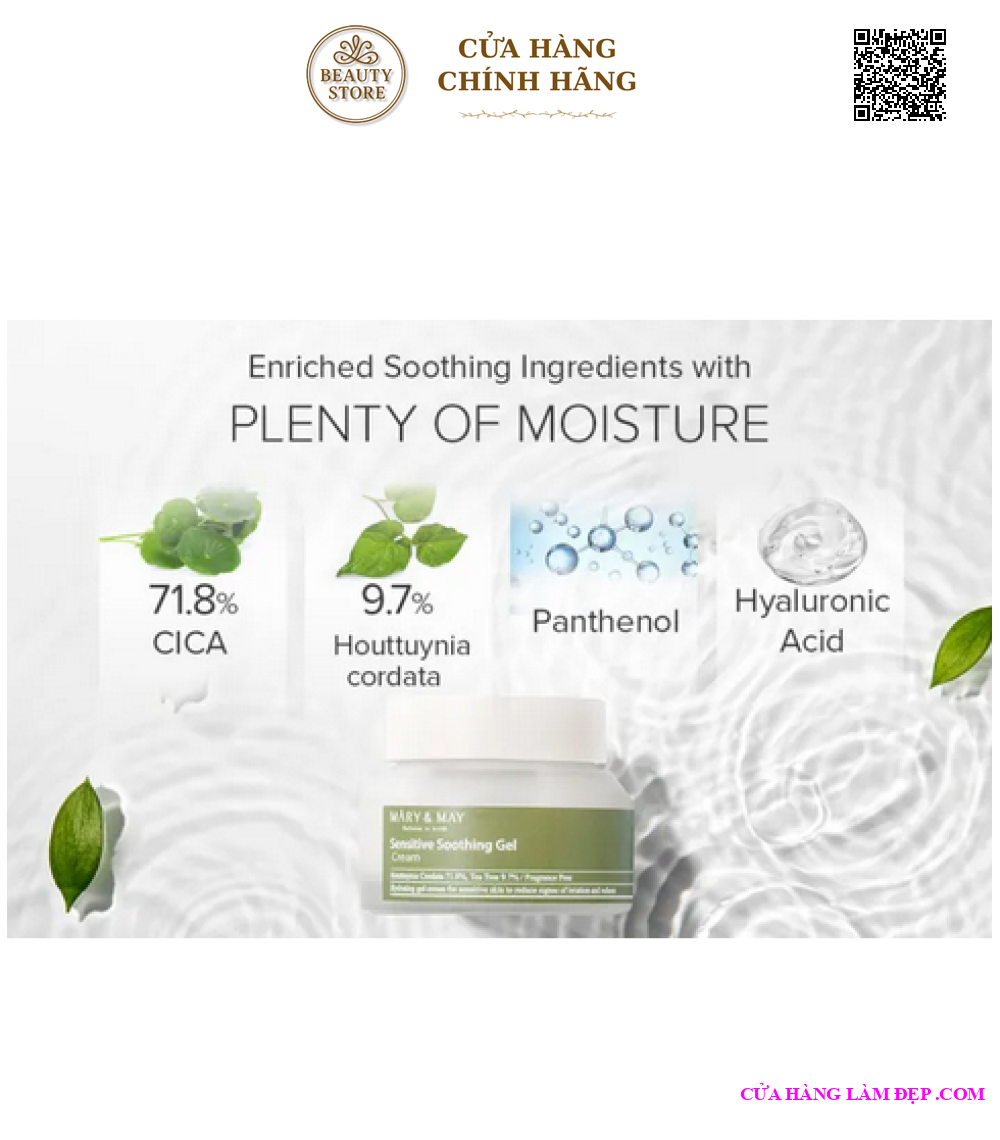 Tại Hệ Thống Cửa Hàng Làm Đẹp Sản Phẩm Kem Dưỡng Dịu Da, Cải Thiện Dầu Thừa Mary & May Sensitive Soothing Gel Cream 70g Hàn Quốc Có Giá: 400.000 VNĐ
