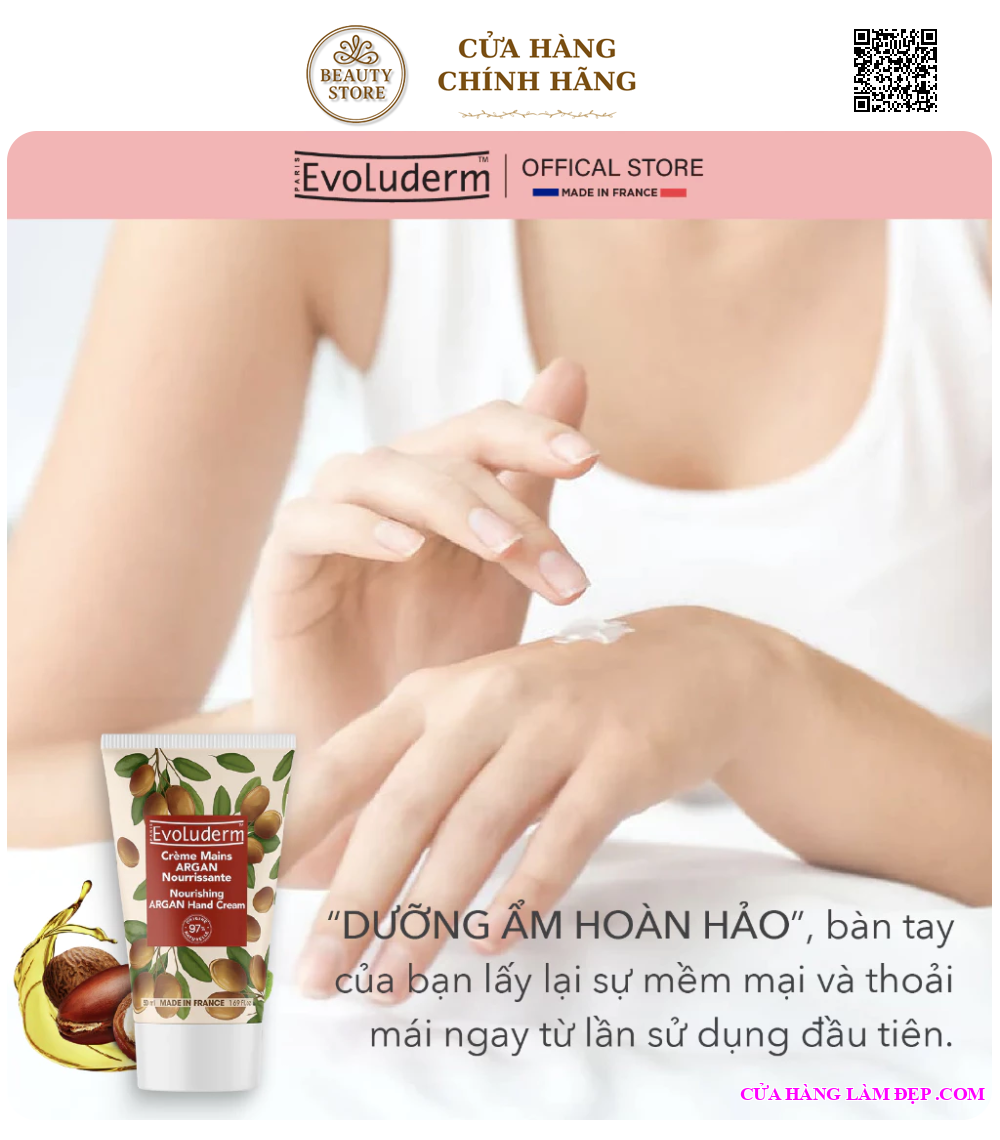Tại hệ thống Cửa Hàng Làm Đẹp, sản phẩm Evoluderm Kem Dưỡng Ẩm Da Tay Tinh Dầu Argan 50ml từ Pháp có giá 125.000 VNĐ