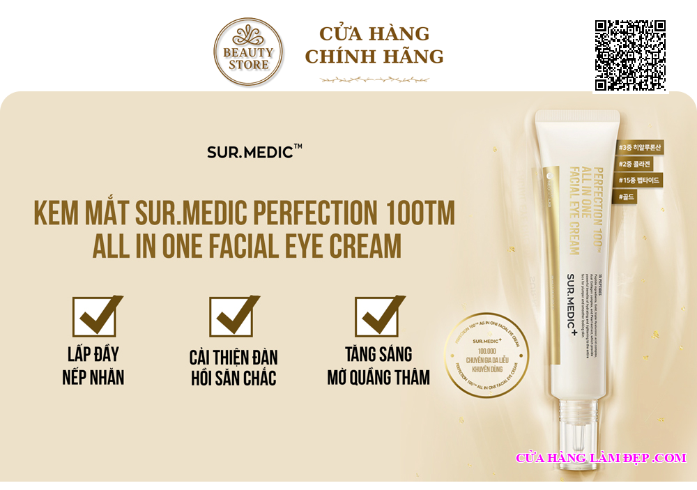 Tại hệ thống Cửa Hàng Làm Đẹp, sản phẩm Kem Dưỡng Mắt SUR.MEDIC+ Perfection 100TM All In One Facial Eye Cream Giảm Nếp Nhăn, Ngăn Lão Hóa 35ml Từ Hàn Quốc có giá 600.000 VNĐ