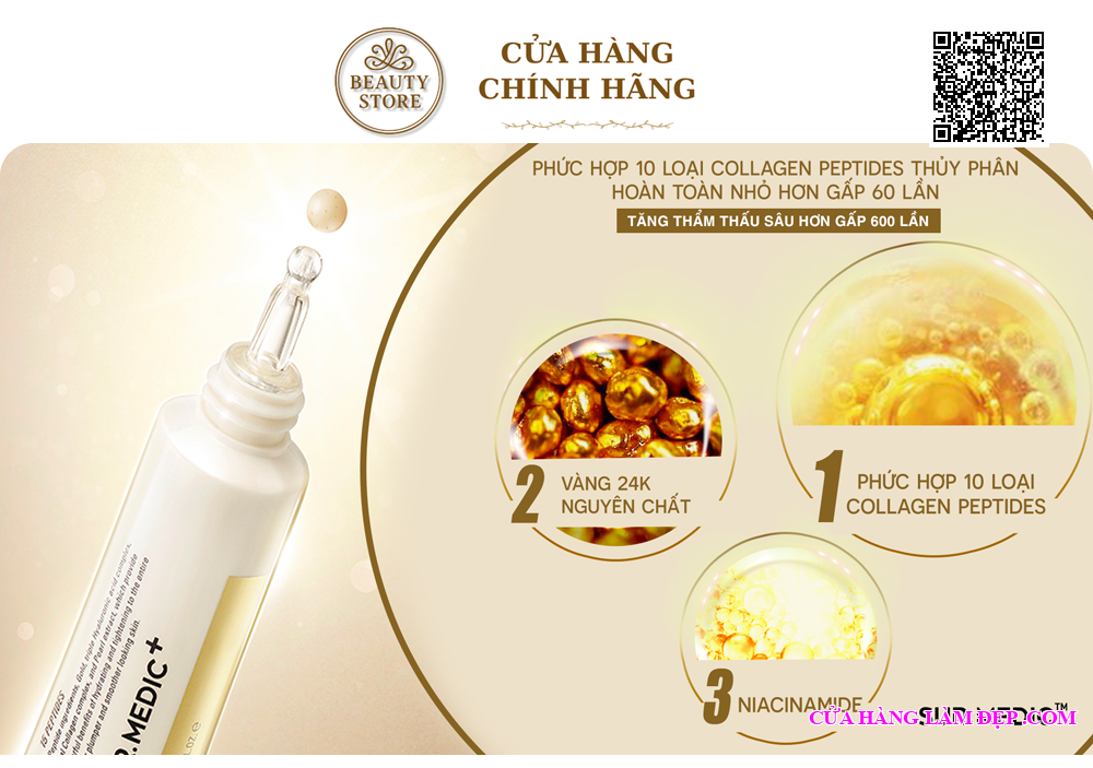 Làm sáng vùng da quanh mắt: Niacinamide và vàng 24K hỗ trợ cải thiện sắc tố, giảm quầng thâm.