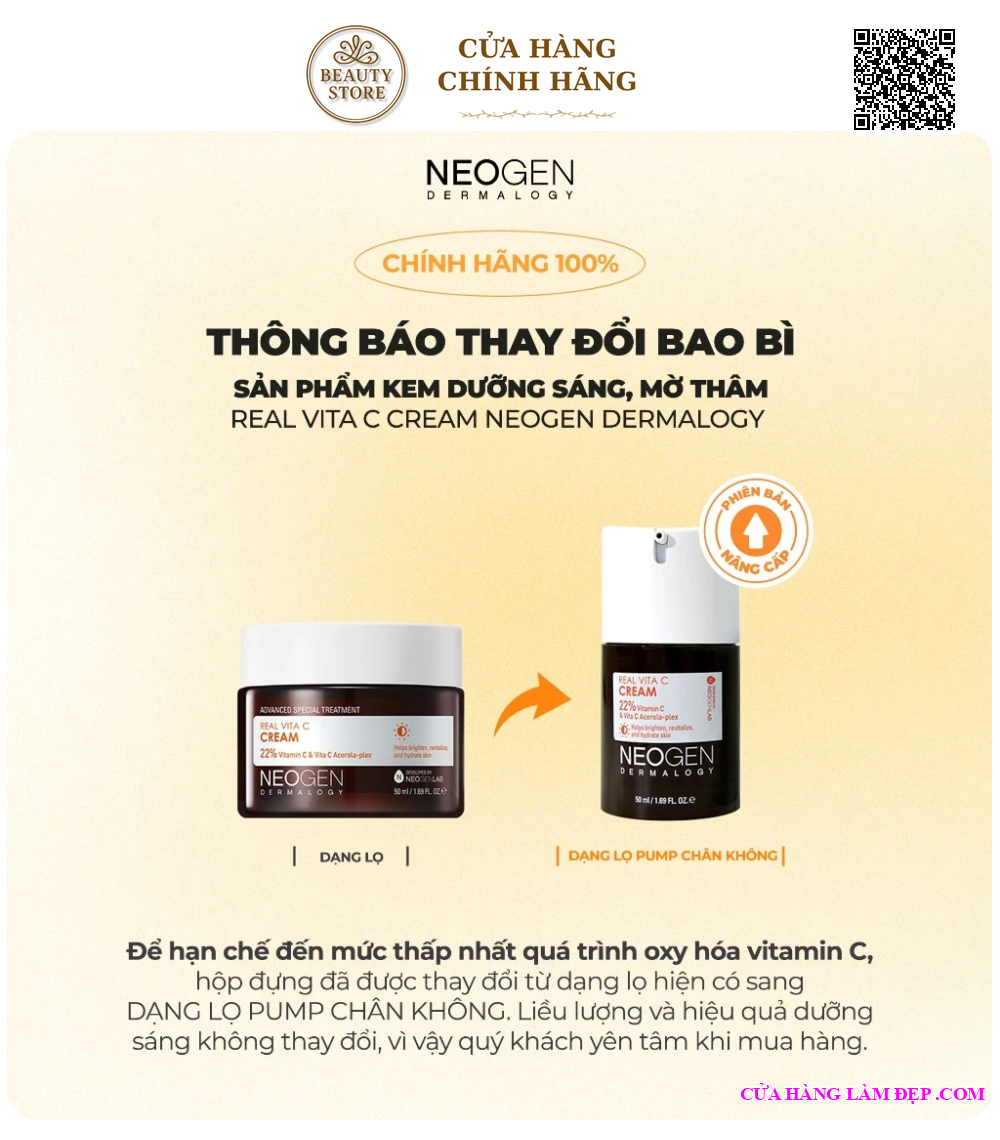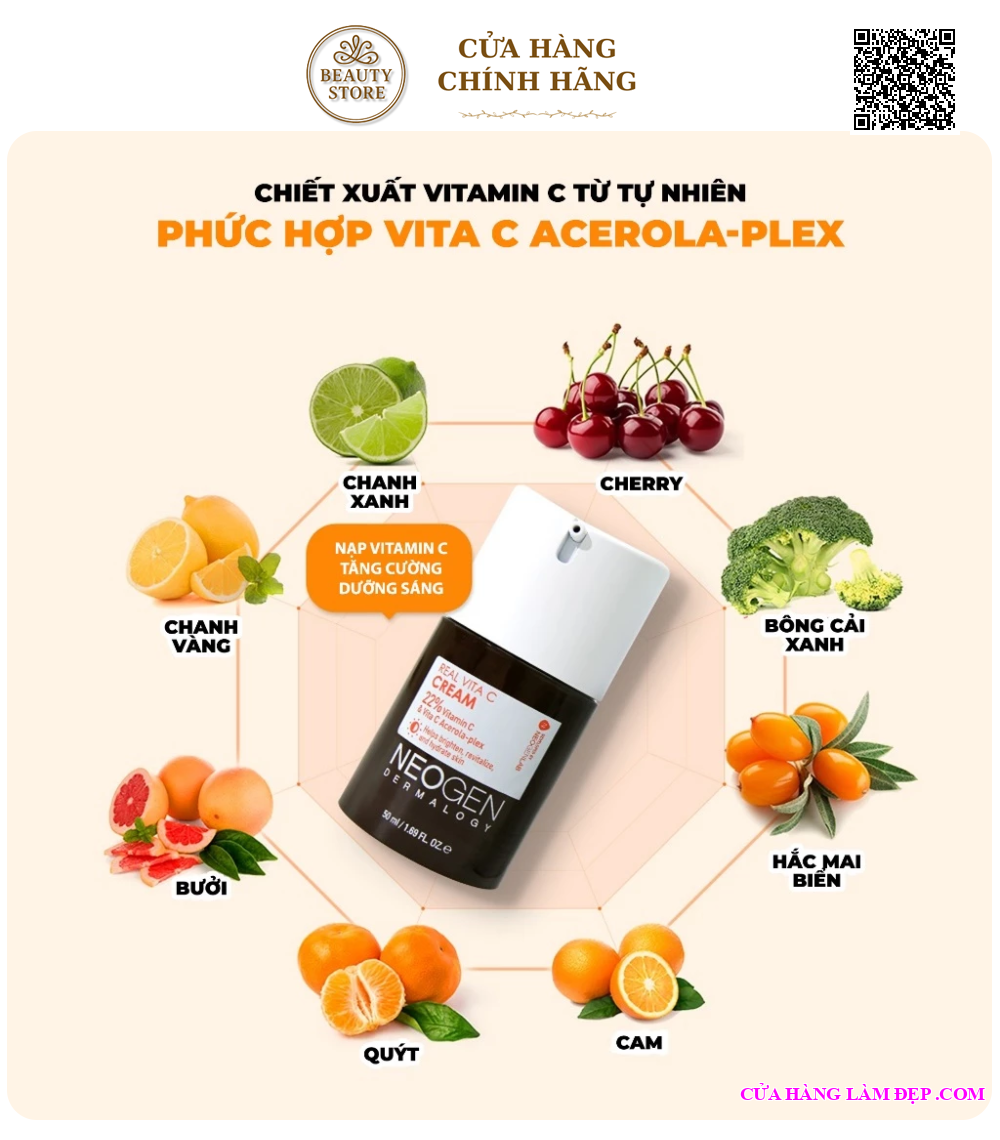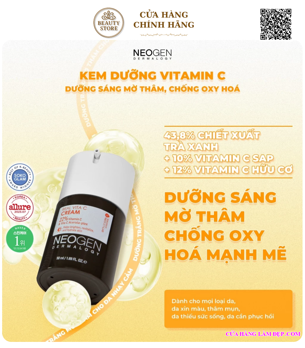 Kem Dưỡng Neogen Dermalogy Real Vita C Cream Kem Vitamin C Dưỡng Sáng, Mờ Thâm Mụn, Chống Gốc Tự Do 50ml từ Hàn Quốc được khách hàng của Hệ Thống Cửa Hàng Làm Đẹp đánh giá cao.
